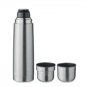 Artikel-Nr: OCBMO2438-16Set bestehend aus doppelwandiger Isolierflasche aus recyceltem Edelstahl (90% recycelter Edelstahl, 10% Edelstahl) sowie 2 Bechern (Innenwand PP) im Deckel. Füllmenge Flasche: 750 ml, Becher: 150ml und 125ml.