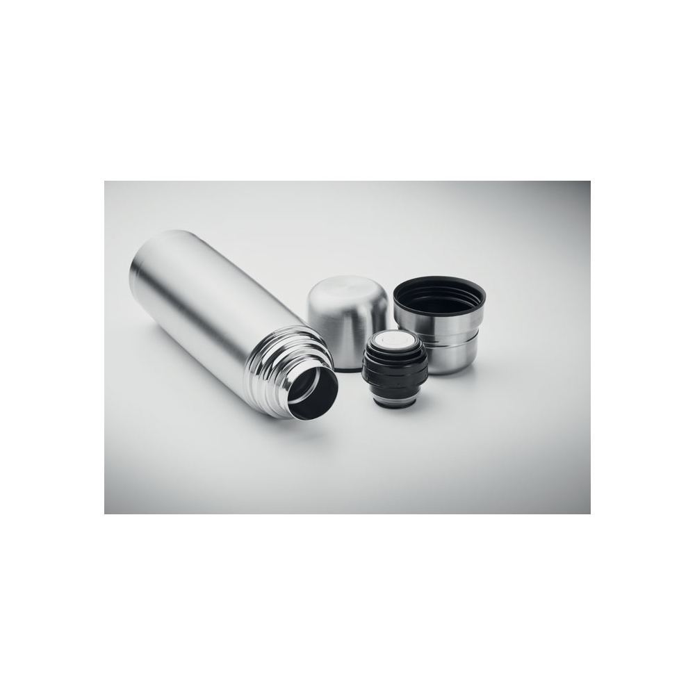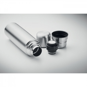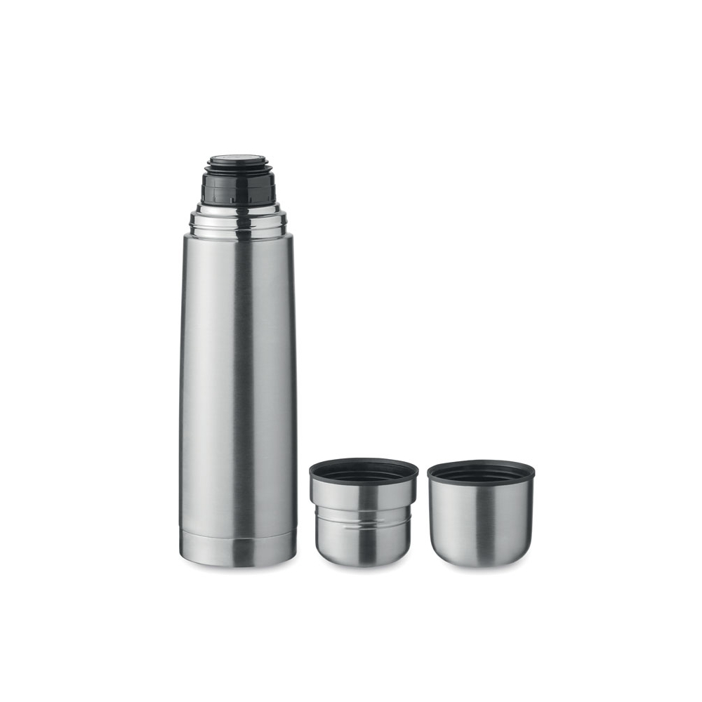 Artikel-Nr: OCBMO2438-16Set bestehend aus doppelwandiger Isolierflasche aus recyceltem Edelstahl (90% recycelter Edelstahl, 10% Edelstahl) sowie 2 Bechern (Innenwand PP) im Deckel. Füllmenge Flasche: 750 ml, Becher: 150ml und 125ml.