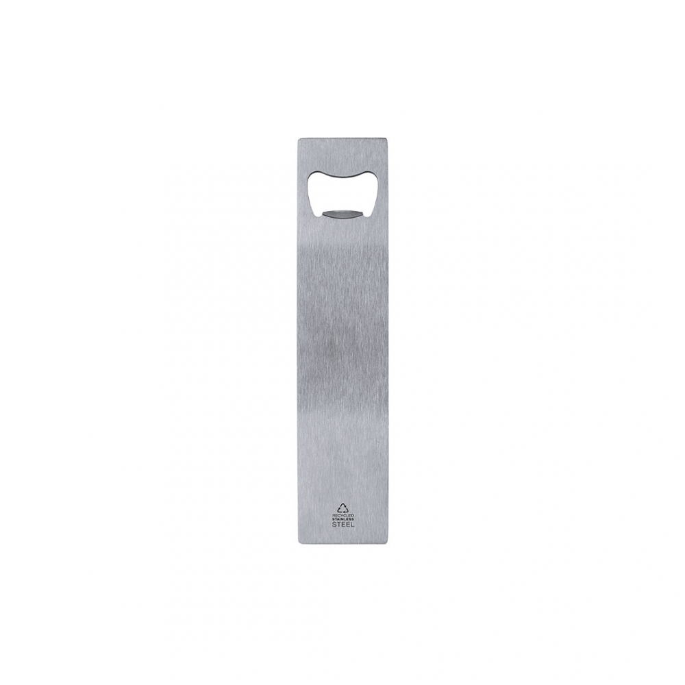 Artikel-Nr: KTO21727009000Flaschenöffner aus recyceltem Edelstahl. Enthält das Zeichen für recycelten Edelstahl. Edelstahl ist eines der am meisten nachgefragten Materialien und ist fast überall zu finden, von Alltagsprodukten bis hin zu Großkonstruktionen. Mit unzähligen Eigenschaften, unter denen Haltbarkeit und hohe Wiederverwendbarkeit hervorzuheben sind, macht es zu einer sehr geschätzten Alternative in nachhaltigen Lösungen. Bei richtiger Behandlung ermöglicht es die Gewinnung neuer Ressourcen mit unendlicher Verwendung.
