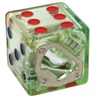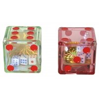 Artikel-Nr: 375101342Der Kunststoffwürfel mit drei kleinen Würfelchen im Innern ist ein Flaschenöffner. Innen ist er beleuchtet. Die zwei Lämpchen blinken per Knopfdruck mal schnell, mal langsam oder leuchten dauerhaft. Verschiedene Farben sortiert.