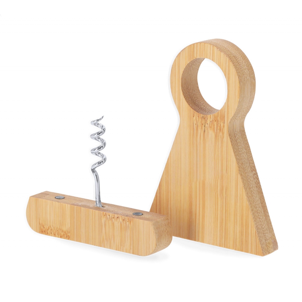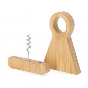 Artikel-Nr: AND735495-00Flaschenhalter aus Bambus mit Korkenzieher aus Edelstahl.