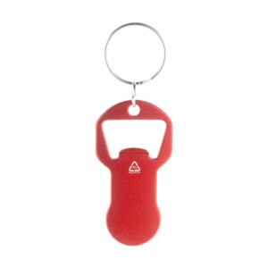 Artikel-Nr: AND808261-05Schlüsselanhänger aus recyceltem Aluminium mit Flaschenöffner und Einkaufswagenchip.