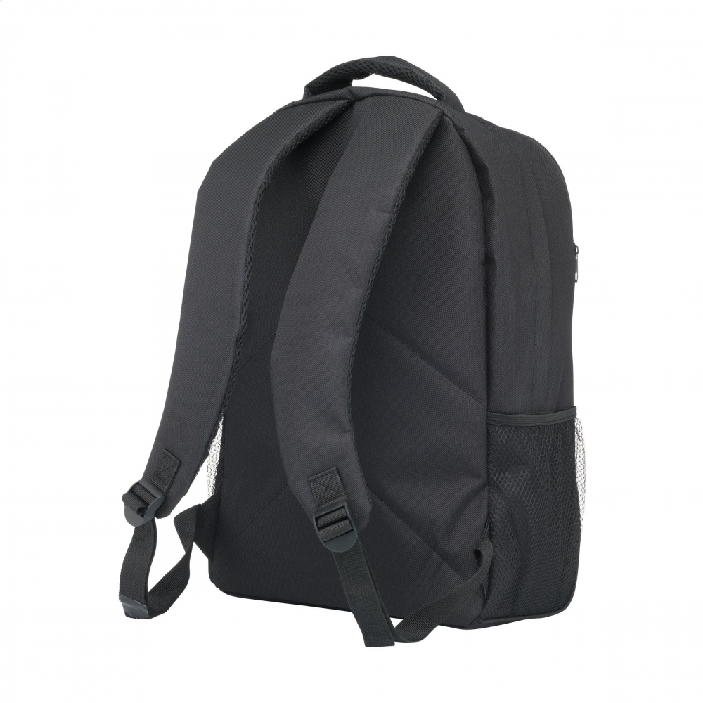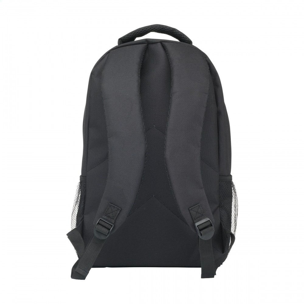 Artikel-Nr: CLP266865-001Rucksack aus robustem 600D RPET mit 2 Reißverschlussfächern. Die Fächer des großzügigen Hauptfachs sind mit schützendem Schaumstoff ausgestattet. Eines der Fächer ist für die Aufbewahrung eines Laptops bis zu 15,6 Zoll geeignet. Das andere Fach ist ideal für die Aufbewahrung kleinerer Accessoires, Dokumente oder eines Notizbuchs. Die seitliche Netztasche kann für den Transport einer Wasserflasche genutzt werden. An der Vorderseite der Tasche befindet sich ein praktisches Gummiband, das man festzurren kann – perfekt, um zum Beispiel eine Jacke oder einen Pullover zu transportieren. Für zusätzlichen Tragekomfort sind die Trageschlaufe, die verstellbaren Schulterriemen und die Rückseite mit Schaumstoff ausgestattet. Komplett gefüttert. Der Rucksack ist mit fluoreszierenden Akzenten auf der Vorderseite versehen. Damit ist man auch im Dunkeln gut sichtbar. GRS-zertifiziert. Gesamtes recyceltes Material: 97%. Fassungsvermögen ca. 20 Liter.