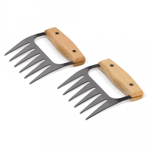 Artikel-Nr: ART94520N0093Bei den Krallen des Grillbären handelt es sich um ein großartiges Set von Werkzeugen für alle Männer / Frauen, die ein gutes Barbecue lieben, besonders wenn große Fleischstücke auf dem Grill liegen. Mit diesen Metallwerkzeugen mit schwarzer Teflonbeschichtung und Holzgriff können Fleischteile problemlos auf dem Grill gedreht oder anschließend zerteilt werden. Einfach in der Handhabung, um den 'Bärenhunger' zu stillen, und mit den Krallen können Sie das Fleisch leicht in schöne kleine Fleischstücke 'zerreißen', die als 'gezogenes Fleisch' bezeichnet werden. Mit diesen Werkzeugen ist dieses beliebte Gericht wirklich einfach und schnell zuzubereiten.