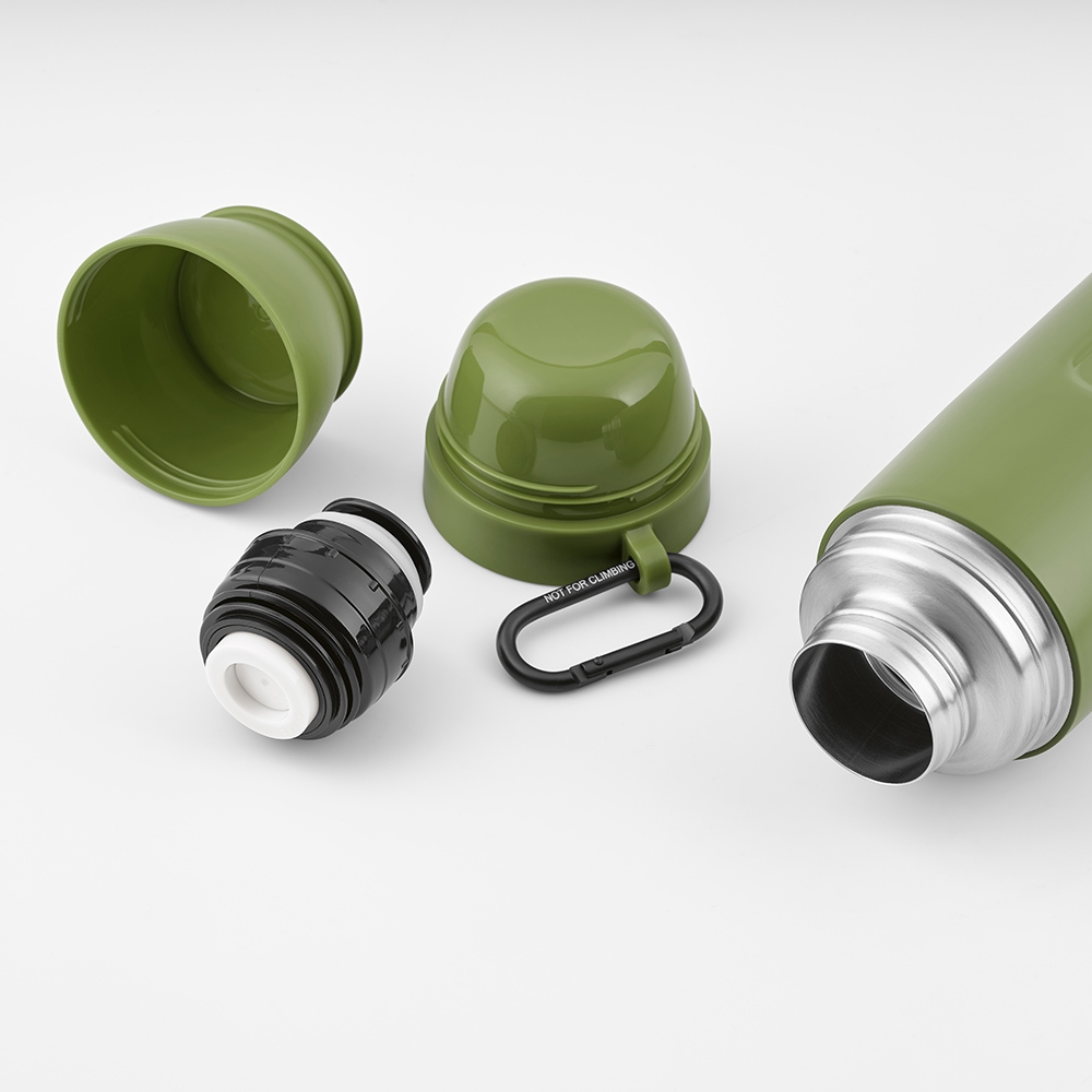 Flinders Thermos recy. Edelstahl, 1080 ml. Mit 2 Bechern und Karabiner