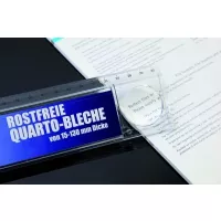 Artikel-Nr: 610L23Focus ist ein glasklares Kunststoff-Lineal mit Lupenfunktion in den Maßen 310 x 54mm. Bereits ab 100 Stück können in dem mittleren Schubfach 4-farbig bedruckte Papiereinleger eingefügt werden. Die Rückseite des Papiereinlegers ist ebenso als Werbefläche nutzbar.