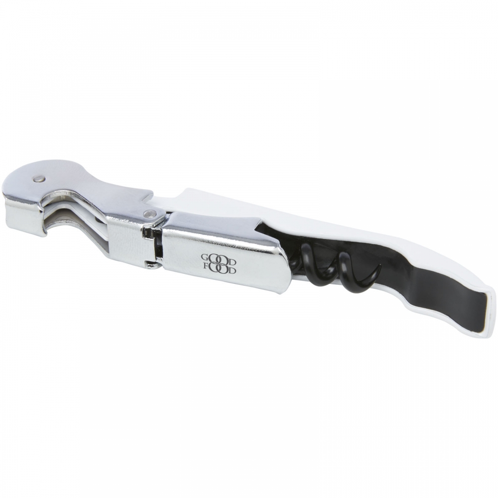Artikel-Nr: CPO11328201Kellnermesser aus Edelstahl mit farbigem Körper mit Folienschneider und Flaschenöffner. Durch die zweistufige Konstruktion lässt sich der Korken leicht aus der Flasche herausziehen.