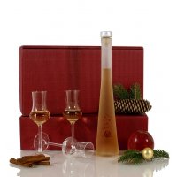 Artikel-Nr: A276K00207Da passende Präsent zur Weihnachtszeit ... In einer ansprechenden Präsentkartonage mit Sizzle Pak präsentiert sich eine sandgestrahlte Schmuckflasche 'Cosmos' 0,2 Ltr., gefüllt mit leckerem Apfel-Zimt-Likör und dazu passenden Gläser Piacensa. Durch Veredelung der Schmuckflasche mittels Sandstrahlung mit Ihrem Logo vermitteln Sie eine nachhaltige und exklusive Werbebotschaft. Eine geschmackvolle Aufmerksamkeit für Kunden und Geschäftspartner zum Abschluß eines Jahres.