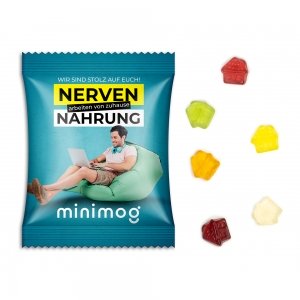 Artikel-Nr: MGN01003-0168Fruchtgummi Standardformen im individuell bedruckten Werbetütchen.