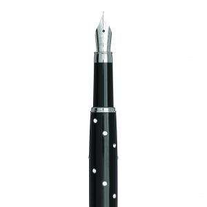 Artikel-Nr: INP58-1101580Metall-Füllfederhalter ST. PETERSBURG in schwarzer Klavierlack-Optik: mit Iridium-Point-Feder, Verschlusskappe mit Clip, auf dem Schaft mit 24 CRYSTALLIZED™-Swarovski-Elementen besetzt, 1 Tintenpatrone inkl., Lieferung im Etui