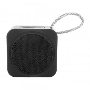Artikel-Nr: AND864109-10Kabelloser Lautsprecher aus recyceltem ABS mit Trageschlaufe, Metallgitter und wiederaufladbarem Akku (300 mAh). Mit Micro-SD-Funktion zur MP3-Wiedergabe. Inklusive USB-Ladekabel.