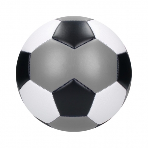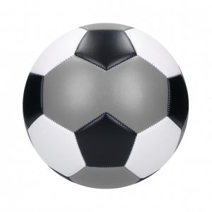 Artikel-Nr: ELT01105000-00000Ein Fußball der auffällt! Maschinell genähter Fußball aus PVC in den Farben weiß, schwarz und grau. Größe 5. Der Ball ist 3-lagig und hat 32 Panele inkl. einem Doppelpanel. Er verfügt über eine Dicke von 2,0 mm, ein Butyl-Ventil und eine Latex-Blase. Gewicht: 330-360 g.