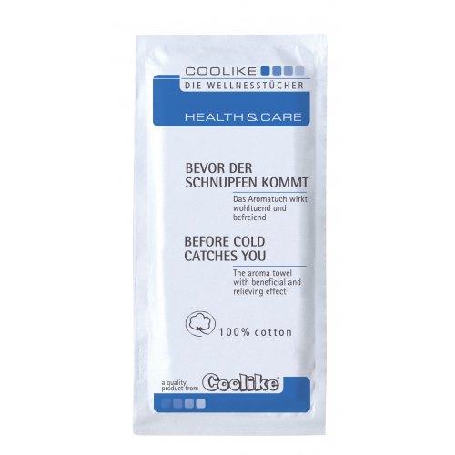 Ideal bei geistiger und körperlicher Anstrengung zur nachhaltigen Erfrischung. Material: Baumwolle Inhalt : 1 Tuch im Einzelsachet Tuchformat: ca. 185 x 200 mm Verpackungsformat: 68 x 140 mm Druckformat: 54 x 122 mm'