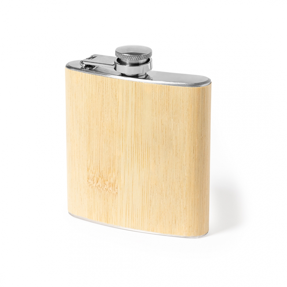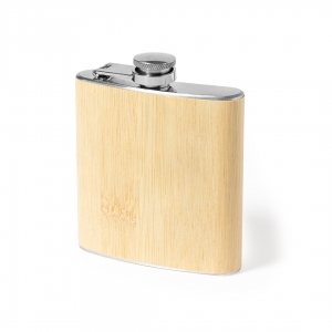 Artikel-Nr: KTO11454000000Flask der Linie Natur 170 ml capacity. Outside in bamboo with soft finish, stainless steel body and safety screw cap. Ergonomically designed to fit comfortably in your pocket. Presented in an individual box of eco design in kraft cardboard.