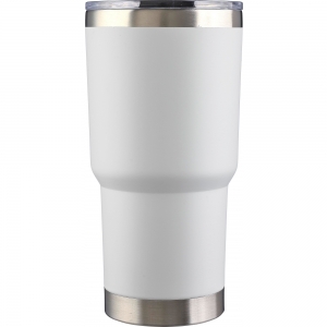 Doppelwandiger, Vakuum Thermobecher aus Edelstahl. Inklusive verschließbarem Deckel mit Trinkschiebeleiste und einem Füllvermögen von 650ml. Ihre Werbung wird auf den Becher graviert.