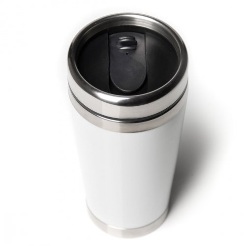 Doppelwandiger Vakuum Isolierbecher aus Edelstahl mit einem Füllvermögen von 500ml. Der Push-Button Verschluss lässt sich mit einer Hand öffnen und ist der optimale Trinkbecher für unterwegs. Ihre Werbung gravieren wir auf die Edelstahlfläche.