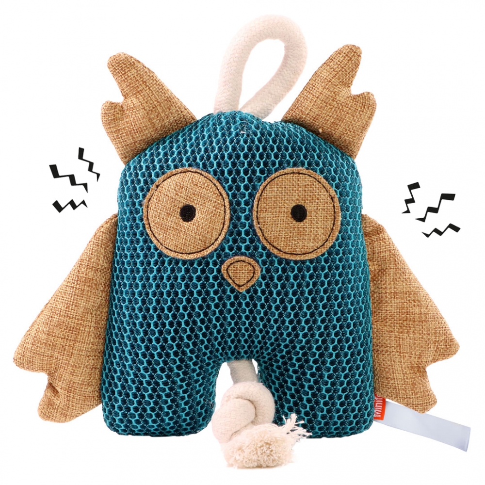 Nicht nur im Wald macht es Hund und Herrchen jede Menge Freude, mit dem Hundespielzeug Eule herumzutoben; die Eule ist das Highlight in jeder Spielkiste. Blau in Kombination mit Details aus Jute, spannenden Knotenelementen und seiner Knisterfunktion, wird der Spieltrieb großer und kleiner Hunde gefordert und gefördert. Die kleine Eule kommt gerne mit auf die Hunderunde durch Wiesen, Wald und Felder.