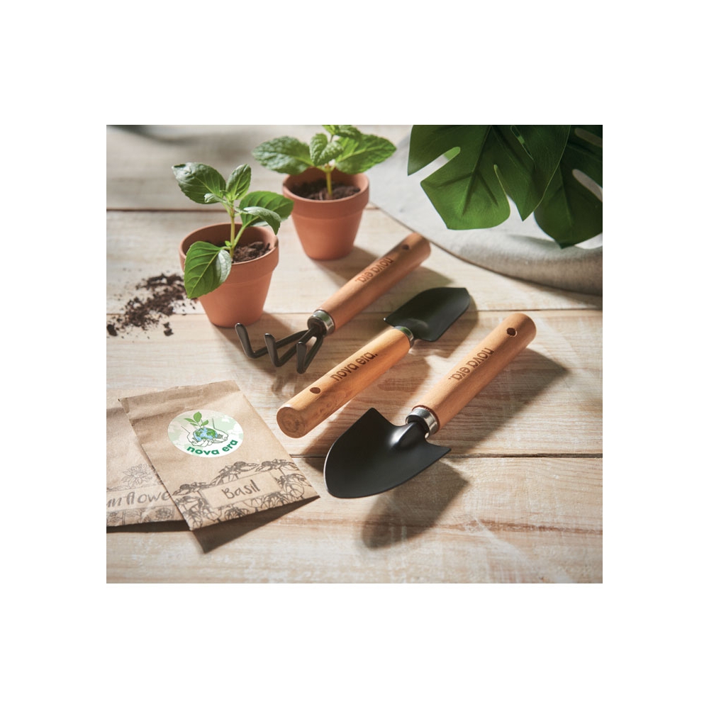 Artikel-Nr: KTO20475000000Komplettes Gartenarbeitsset mit 7 Zubehörteilen und verstellbarer Schürze mit Taschen. Inklusive 2 Schaufeln in verschiedenen Größen, zwei Harken, einer Ahle, einer Gartenschere und Handschuhen. Präsentiert in einer Schachtel im Kraftdesign.