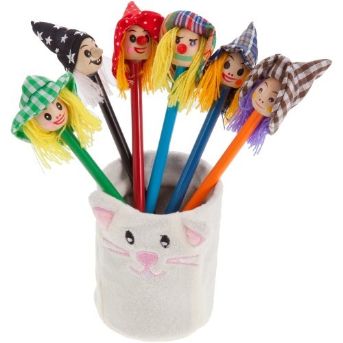 Bleistift mit farbigem Schaft und lustiger Tierfigur, ungespitzt.