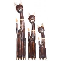 Aus Holz mit Gummireifen und Stoffohren. Der Kopf wackelt dank einer Feder auf und ab. Hund, Katze, Hase sortiert. Achtung! Nicht geeignet für Kinder unter 36 Monaten.
