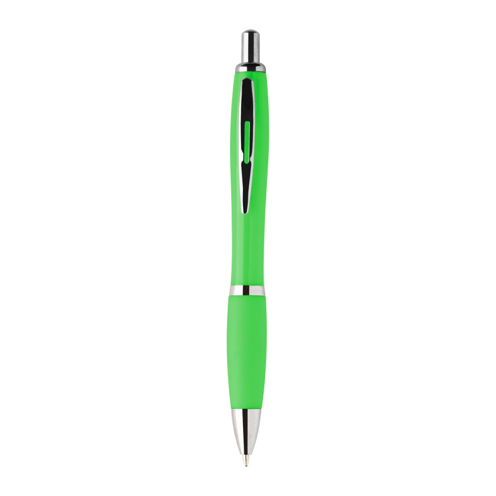 Praktischer Kugelschreiber. Druckknopfmechanismus, mit roter und schwarzer Tinte und Druckbleistift. Passende Druckknöpfe und weicher Griff mit angenehmer Haptik, mit transparentem Clip und Spitze. Lauf in verschiedenen leuchtenden Farben, mit Zeiger oben.