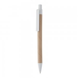 Kugelschreiber aus recyceltem Papier mit individuell gefertigtem Clip aus Sperrholz und blauer Mine. Der Clip wird in einer individuellen Form gefertigt – maximale Größe: 25×35 mm. Der Preis beinhaltet eine Logo-Gravur auf dem Clip. Mindestmenge: 100 Stück.