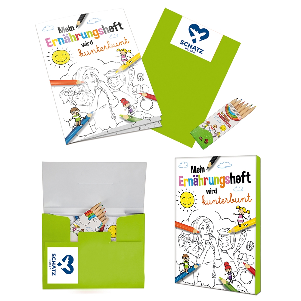 Artikel-Nr: HOP16.10000.0A-4Unsere Malbücher bieten Kindern eine unterhaltsame und kreative Möglichkeit, die Welt spielerisch zu entdecken. Mit 18 liebevoll gestalteten Ausmalmotiven fördern sie nicht nur die Kreativität, sondern vermitteln auch wertvolles Wissen. Zwei Varianten stehen zur Auswahl: • Malbuch einzeln. • Mal-Set: Enthält zusätzlich eine praktische 6er-Buntstiftbox (Standardgestaltung), geliefert in einer hochwertigen, bedruckten Mappe. Veredelungsmöglichkeiten: • Standardausführung: Ab Lager lieferbar, optional mit zusätzlichem Logoeindruck. • Individuelle Gestaltung: Ab 500 Stück mit personalisierten Außenseite ...