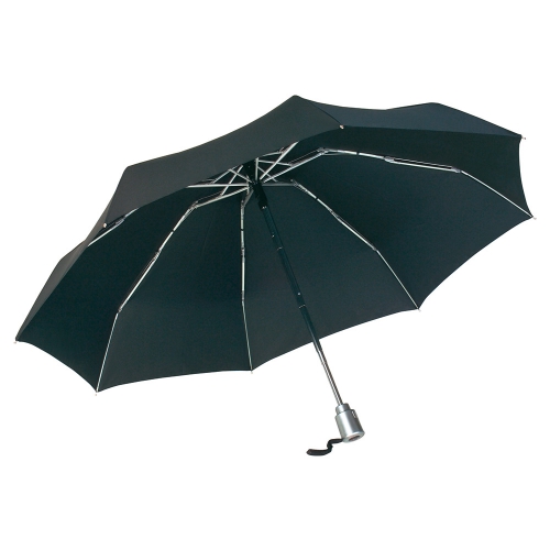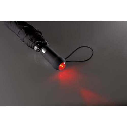 Artikel-Nr: 3615571Safebrella® LED Automatik-Mini-Taschenschirm, öffnet automatisch, 53 cm/8-teilig, 3-teiliges Gestell mit verchromtem Stahlstock, spezialbeschichteter Kunststoffgriff in Schwarz mit silberner Auslösetaste und schwenkbarem LEDLeuchtkopf (inkl. 2 x CR2025 Knopfzellen), 100 % Polyester-Pongee Bezug mit 3M ™ Scotchlite ™ Reflective Material an den Keilecken, Windproof-System, öffnet auf Knopfdruck, Nickelspitzen, ca. 100 cm Ø, geschlossen ca. 34 cm,ca. 380 g, VE 12 Stück