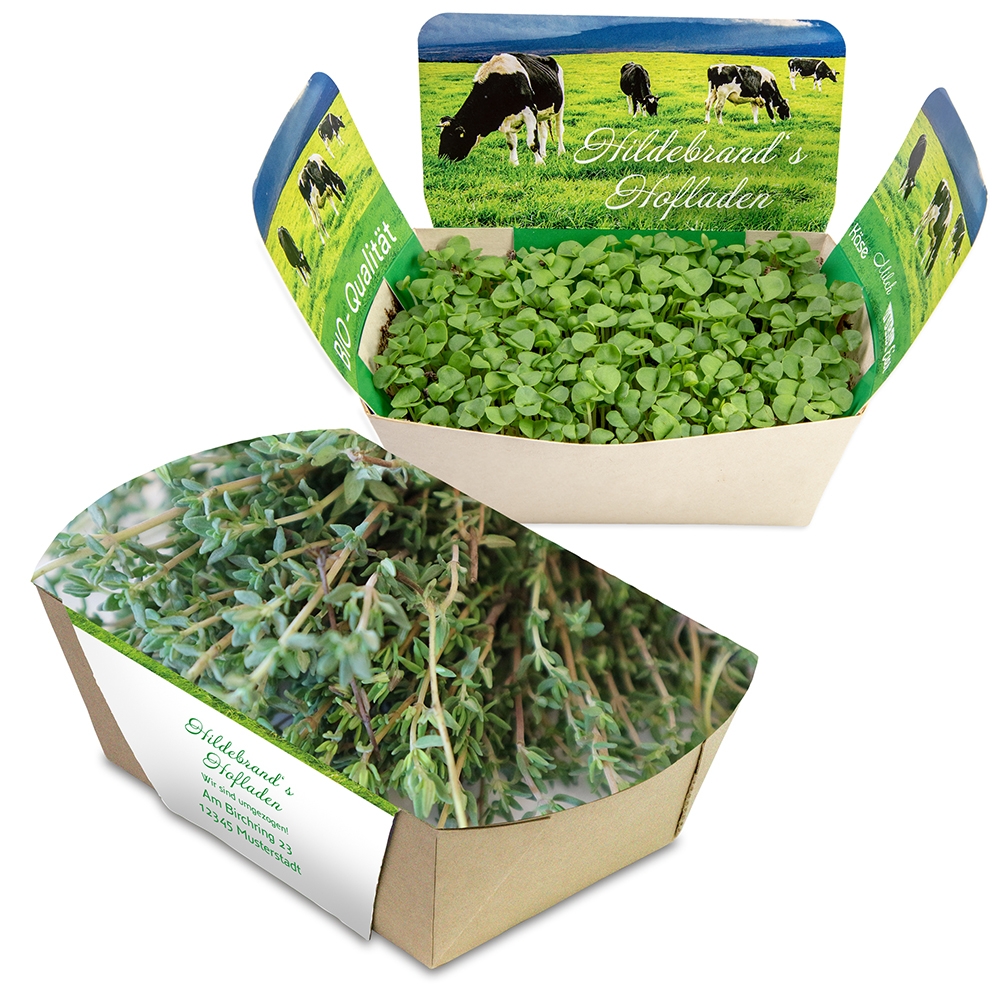 Artikel-Nr: HOP12.30025.00-baAus Kraftpapier produziert und mit Wachs versiegelt, ist der Pflanz-Cup ein Highlight im Bereich "werben&wachsen". Im runden Behältnis werden mit einer Substrattablette als Erde, Samen nach Wahl und Wasser schöne Pflänzchen für Fenstersims oder Bürotisch herangezogen. Die umlaufende Banderole kann individuell bedruckt werden. Verschlossen wird dieses kreative Produkt mit einem Deckel, ebenfalls aus Kraftpapier.