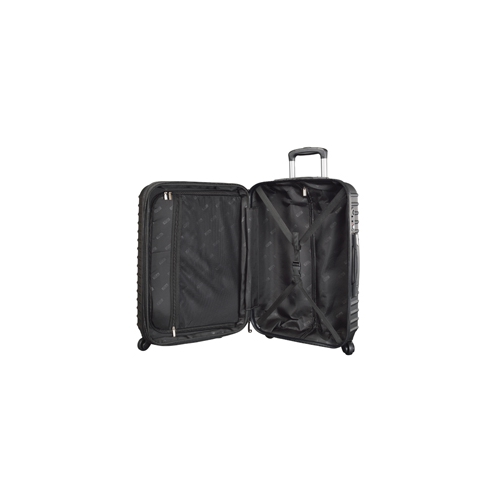 Artikel-Nr: PRM850070_10Robuster Trolley-Koffer aus widerstandsfähigem ABS. Zwei Hauptfächer und Netzinnentasche. Integriertes TSA-Sicherheitsschloss im Lieferumfang enthalten.