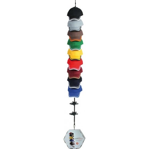 Kann an Wand, Decke oder Tür befestigt werden, Haken und Schrauben werden mitgeliefert, Kordellänge: 150 cm, Verstellbare Cap-Clips halten je 1-3 Caps, Inkl. Aufbauanleitung, Caps separat erhältlich