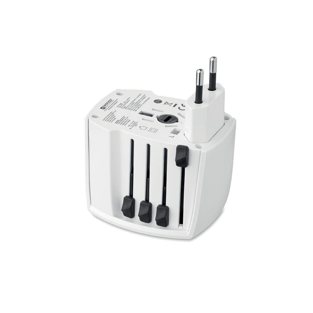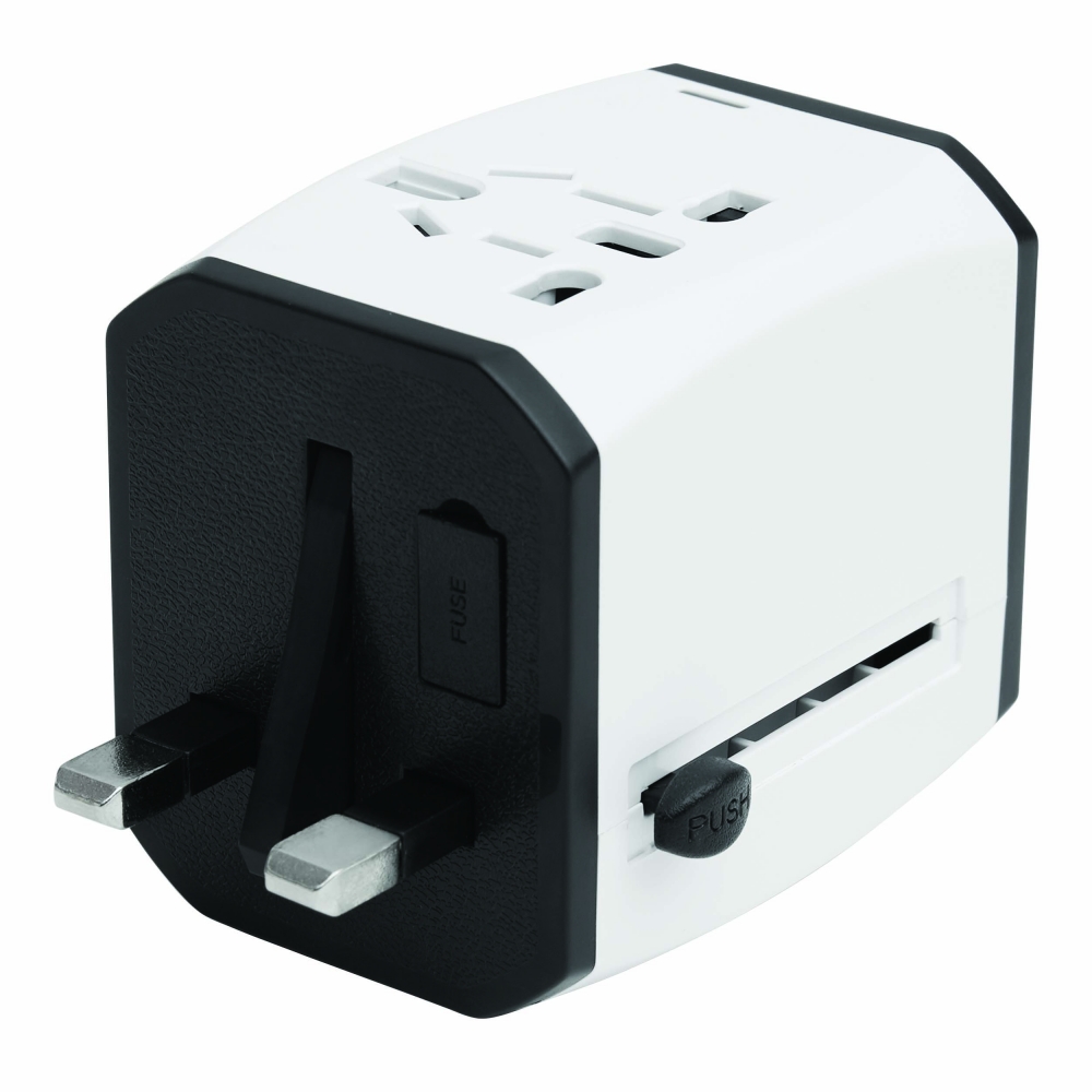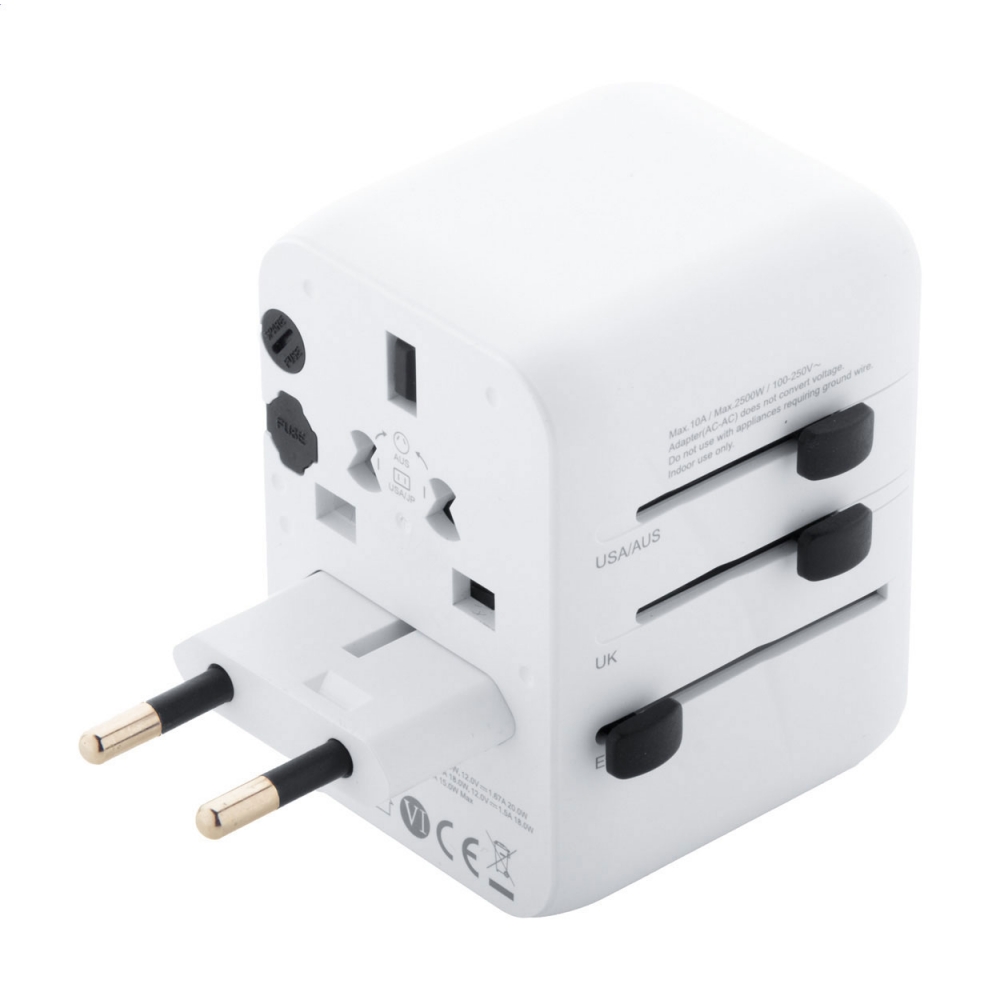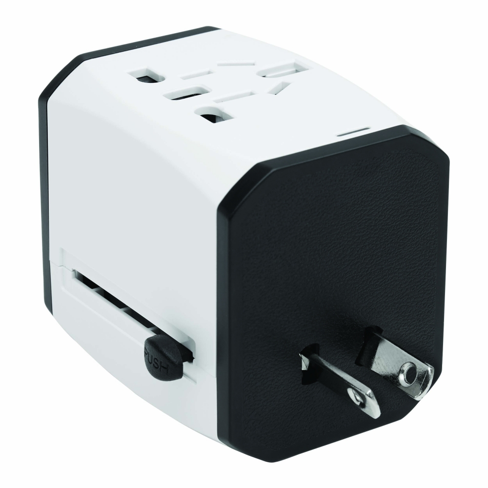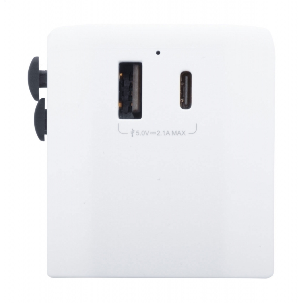 Artikel-Nr: ART91193N0001Dieser universelle Reiseadapter sorgt dafür, dass Sie Ihre Geräte überall auf der Welt an jeder Steckdose aufladen können. Er verfügt über einen USB- und einen USB-Typ-C-Anschluss.
