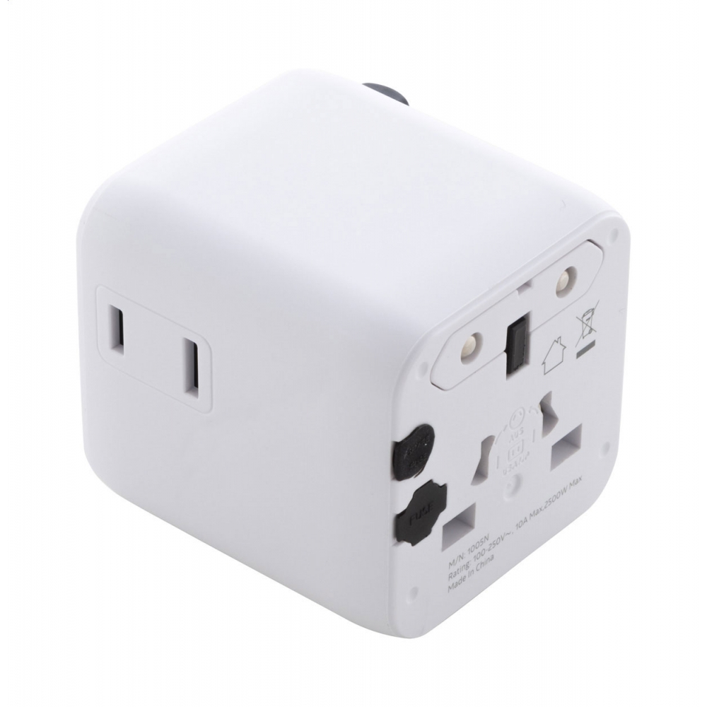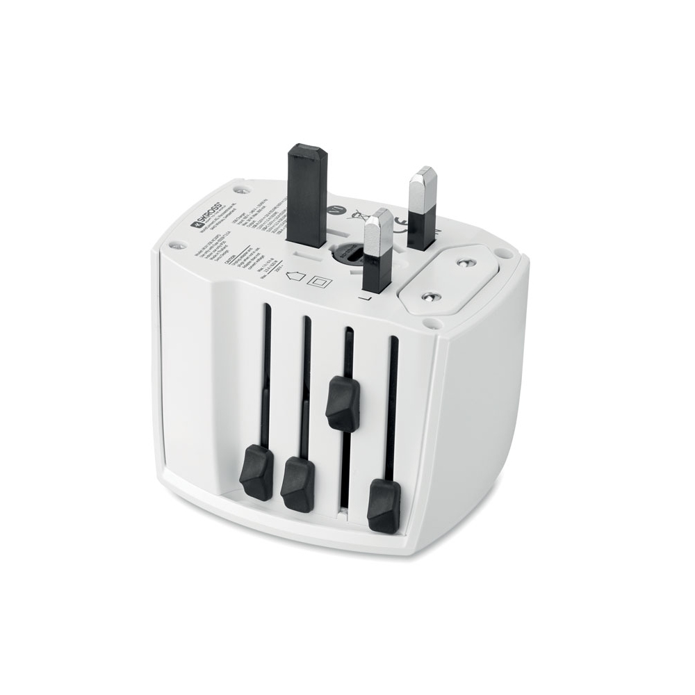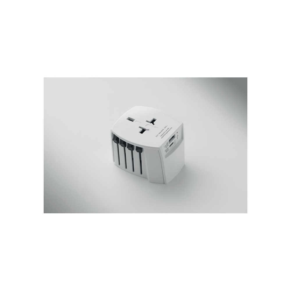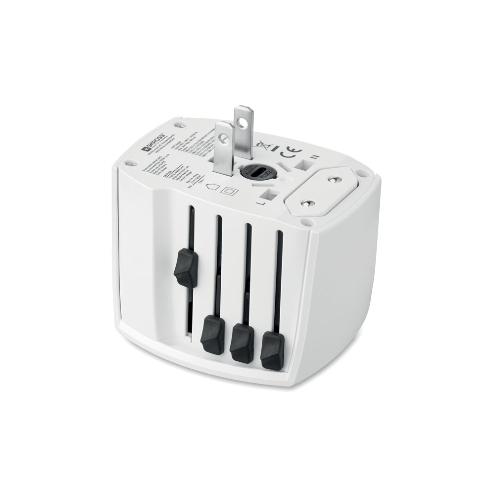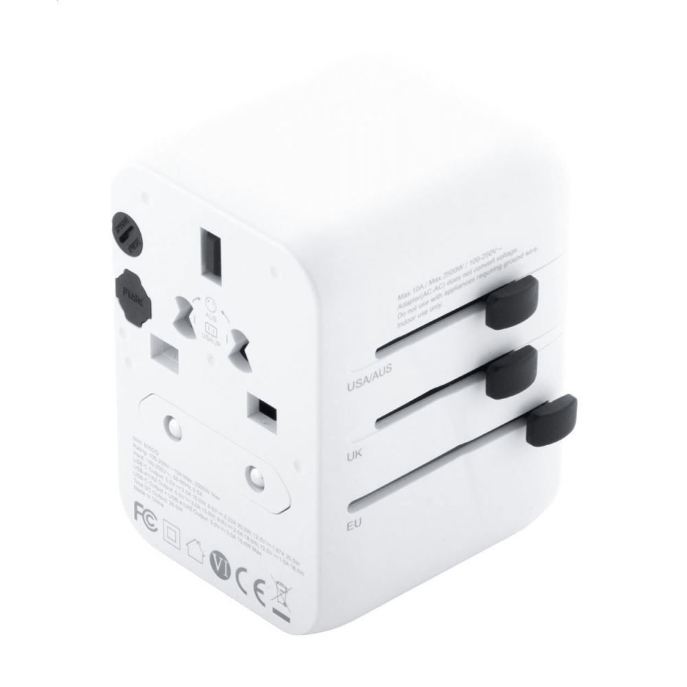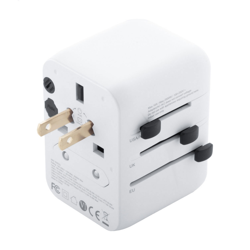 Artikel-Nr: ART91193N0001Dieser universelle Reiseadapter sorgt dafür, dass Sie Ihre Geräte überall auf der Welt an jeder Steckdose aufladen können. Er verfügt über einen USB- und einen USB-Typ-C-Anschluss.