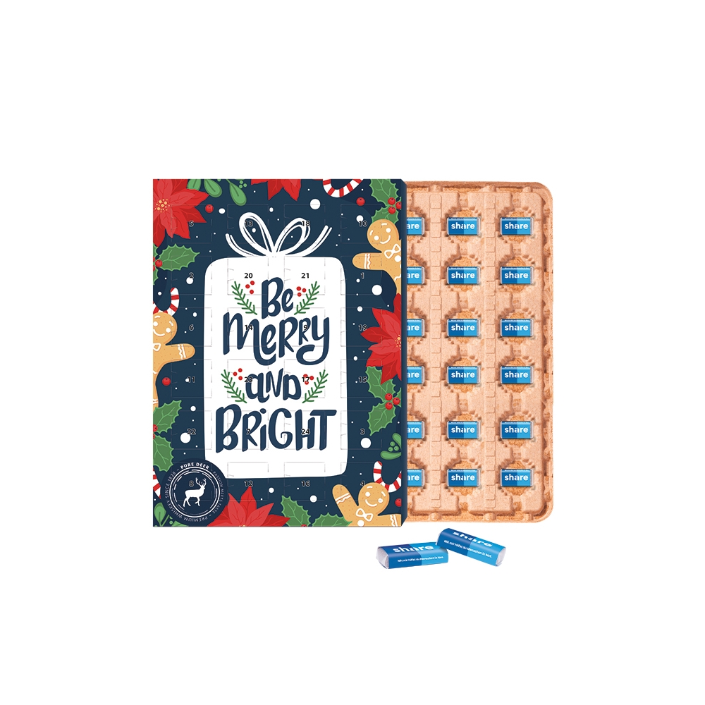 Artikel-Nr: CDL9519624 süße Momente im Advent! Die leckeren Schokowürfel von Ritter SPORT versüßen die Vorweihnachtszeit Tag für Tag in vier beliebten Sorten. Der attraktive Tisch-Adventskalender ist rundum individuell bedruckbar.