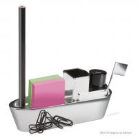 Das kleine Schiff beherbergt einen Bleistift, eine magnetische Büroklammernhalterung und einen Spitzer mit Abfallreservoir. Ganz in Seefahrermanier findet man auf der Backbord und der Steuerbordseite einen pinkfarbene oder grünen Haftnotizblock. Im Schornstein des Minifrachters ist Platz für weitere Schreibgeräte. Man kann sogar Flagge zeigen: Auch die kleine Fahne am Heck kann veredelt werden. Metall, silber, Anspitzer, Büroklammern inklusive, Magnethalterung, Notizzettelhalter, REFLECTS Geschenkverpackung Maße: 130 x 58 x 37 mm
