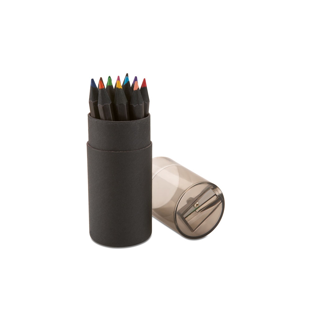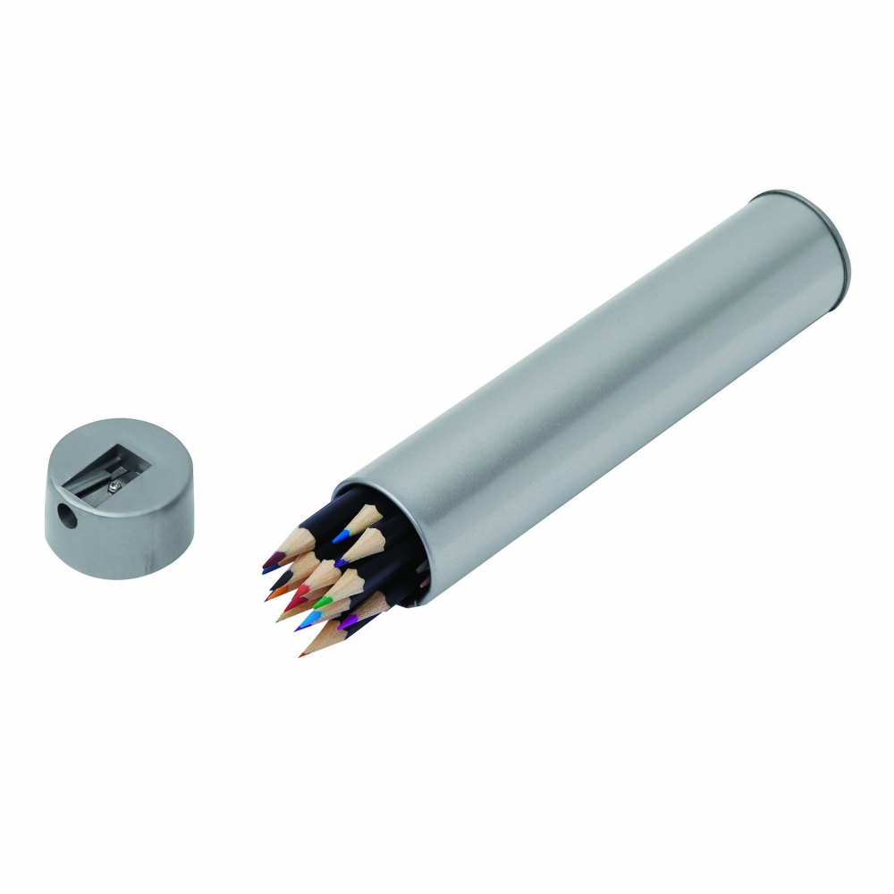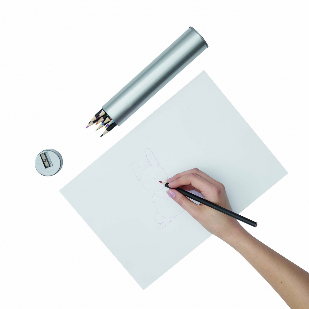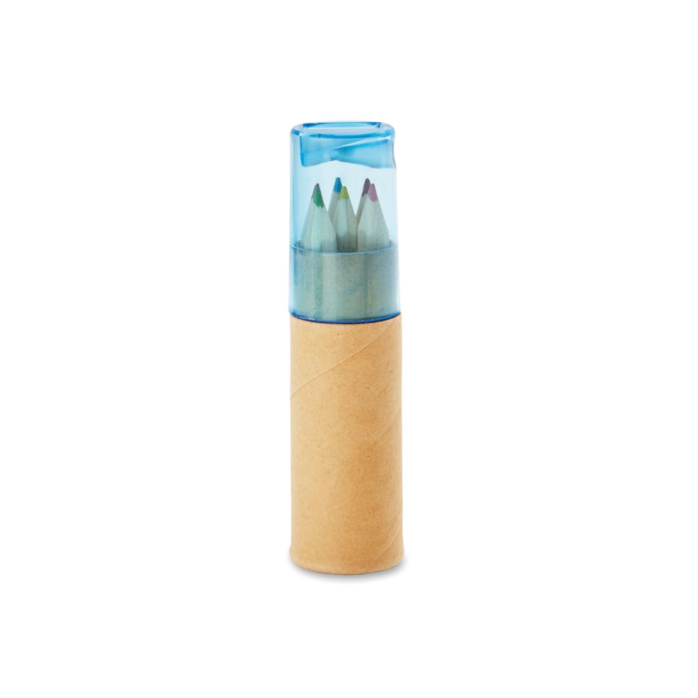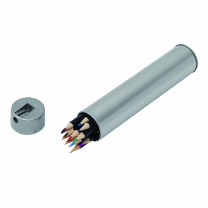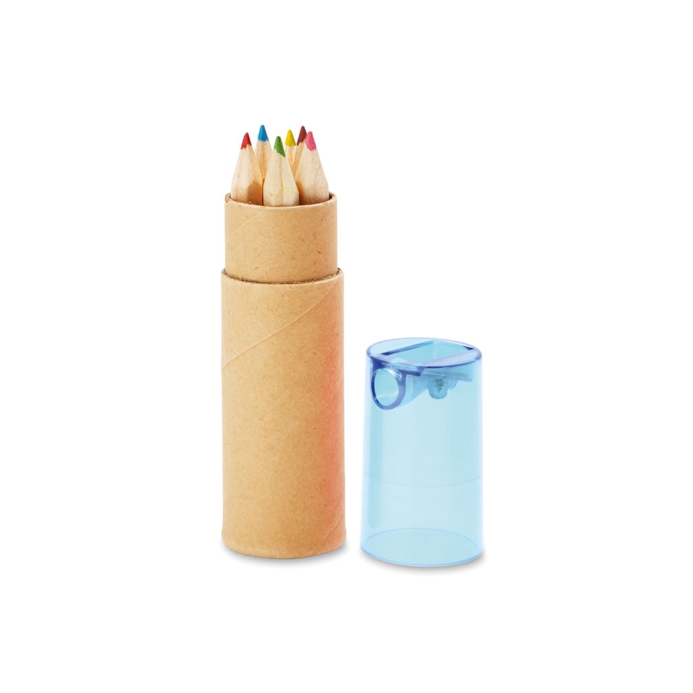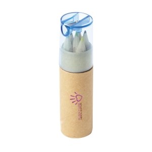 Artikel-Nr: KTO1364100000013-teiliges Set in zylinderförmigem Etui aus Naturkarton. Beinhaltet 6 hölzerne Buntstifte mit sechseckigem Körper in Naturfarbe und Minen in verschiedenen Farben sowie Anspitzer in Gelb und 6 zylinderförmige Wachsmalstifte in verschiedenen lebendigen Farben.