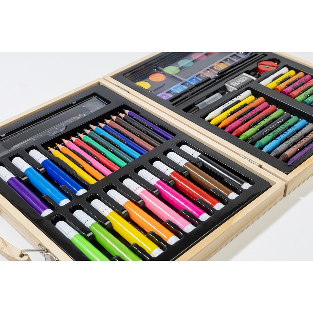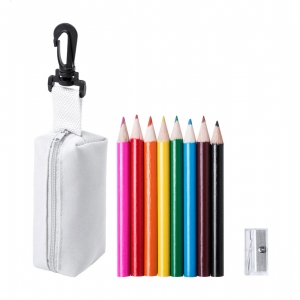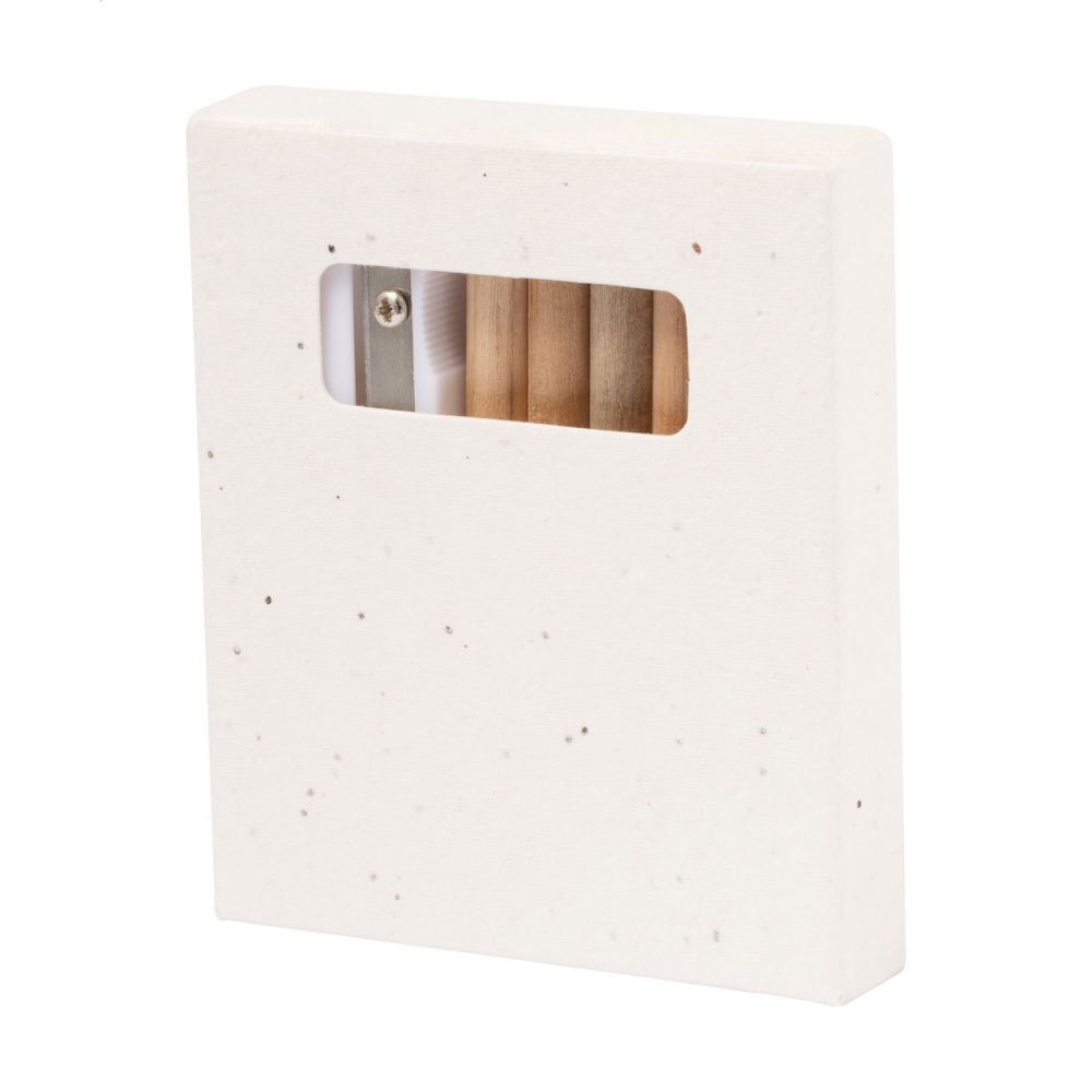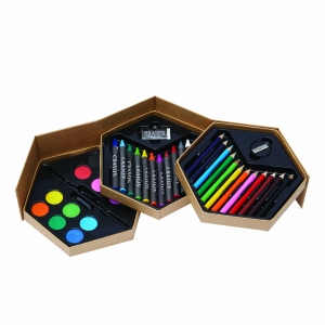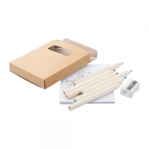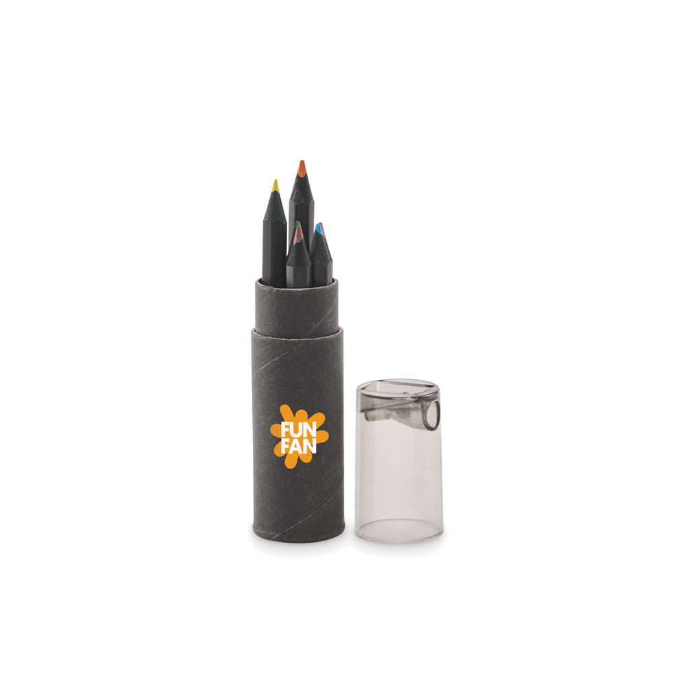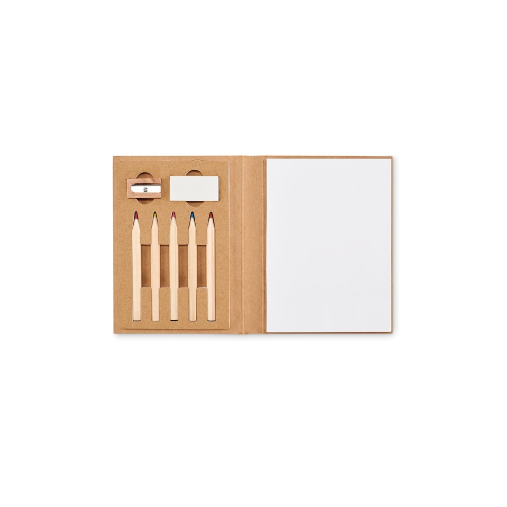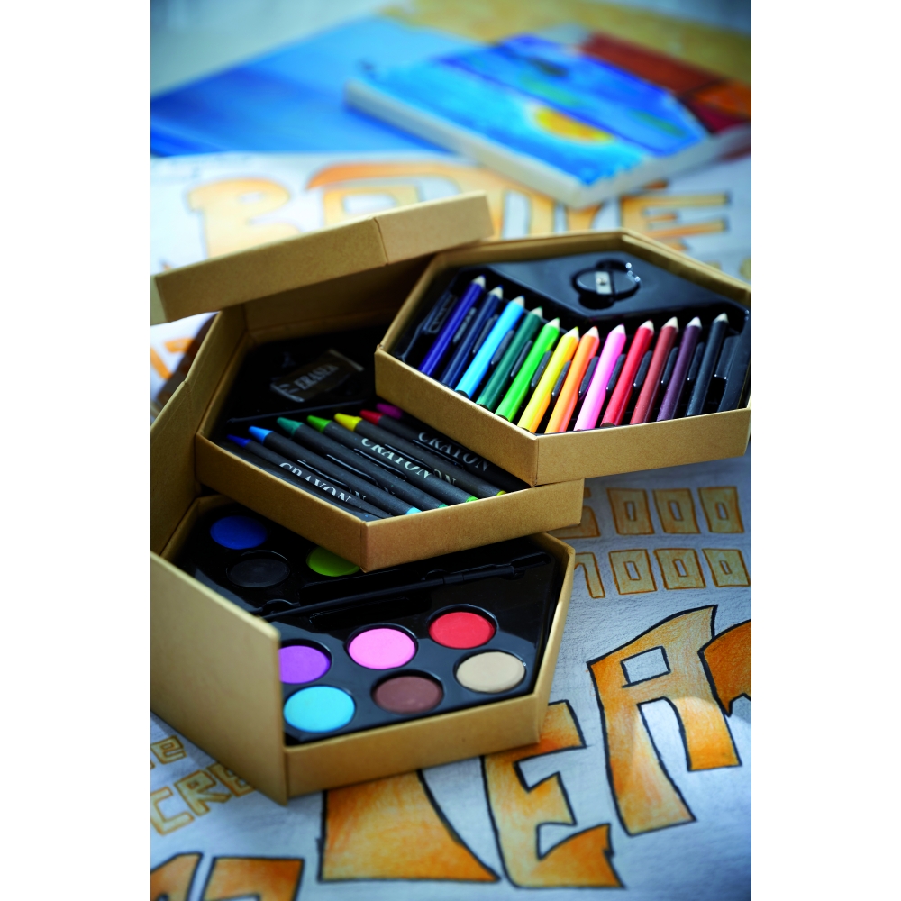 Artikel-Nr: KTO1364100000013-teiliges Set in zylinderförmigem Etui aus Naturkarton. Beinhaltet 6 hölzerne Buntstifte mit sechseckigem Körper in Naturfarbe und Minen in verschiedenen Farben sowie Anspitzer in Gelb und 6 zylinderförmige Wachsmalstifte in verschiedenen lebendigen Farben.