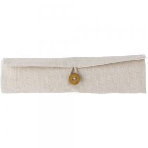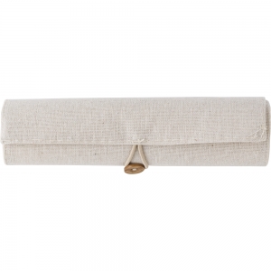 Originelles Etui der Linie Nature aus Baumwolle und Jutefasern. Mit elegantem Knopfverschluss. Enthält Zubehör in Naturfarbe: Radiergummi, Anspitzer, Kugelschreiber aus Recyclingkarton, Holzbleistift und Holzlineal.