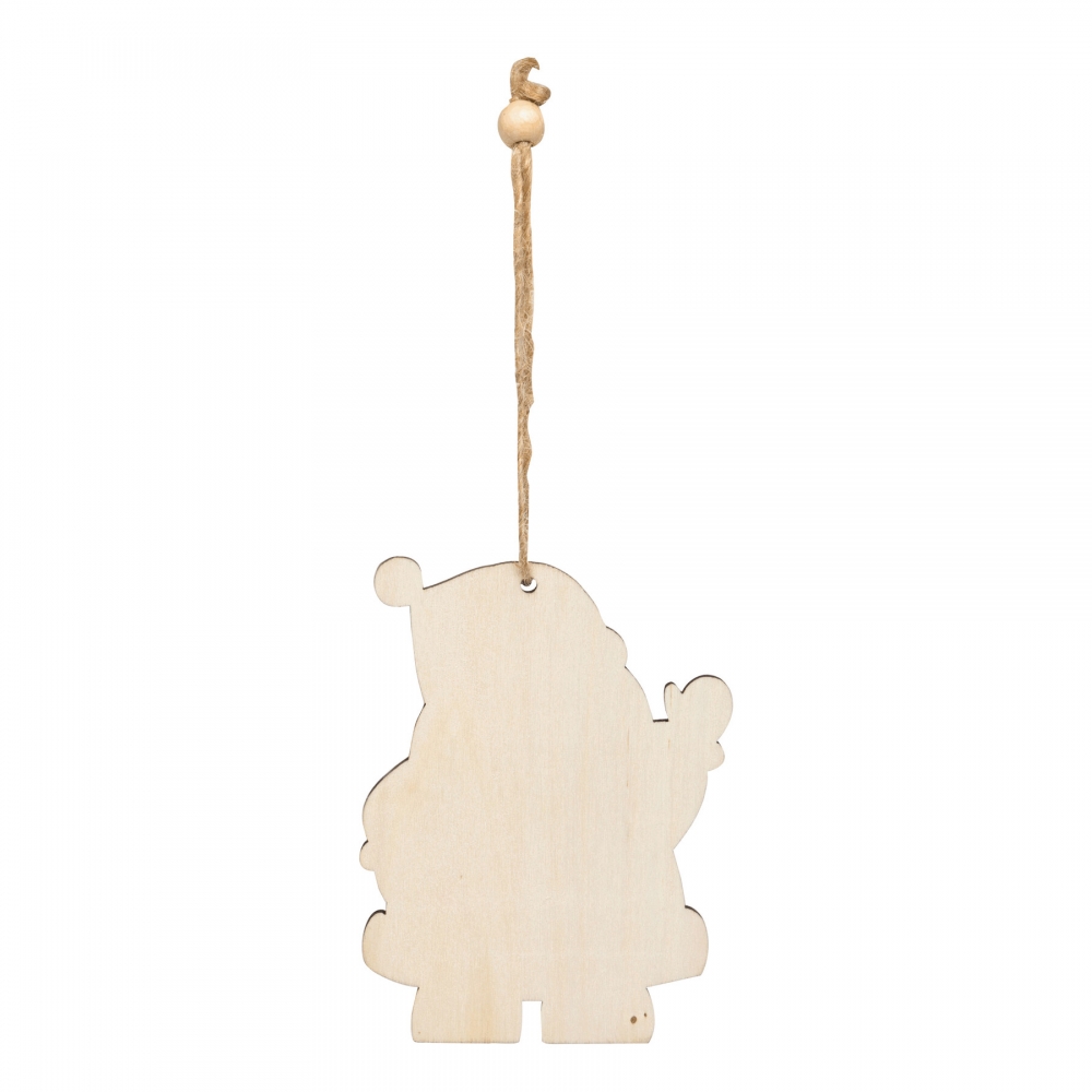 10-teiliges Malset Christbaumanhänger aus Holz mit 3 Holzanhängern zum Bemalen, separaten Aufhängern und 4 farbigen Buntstiften in einer Verpackung. Ihre Werbung wird auf die Verpackung gedruckt.