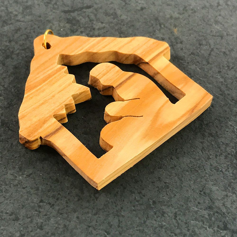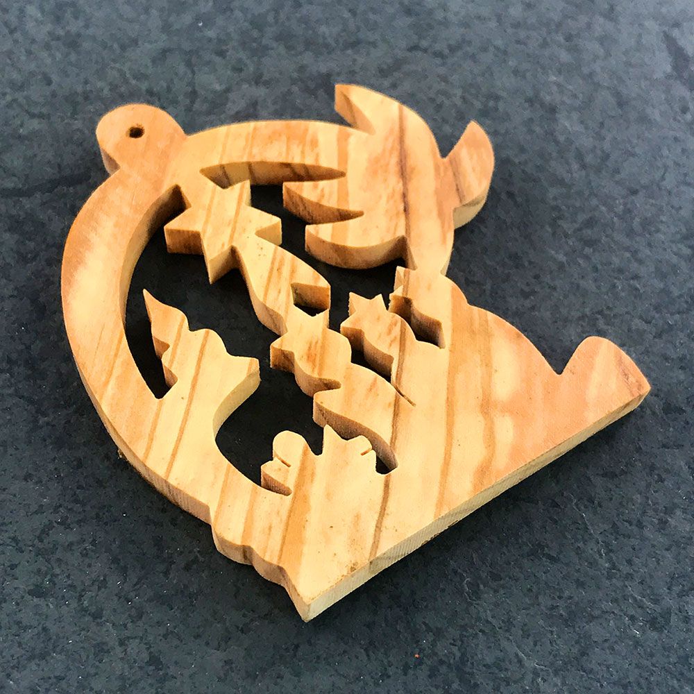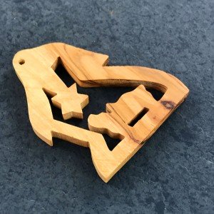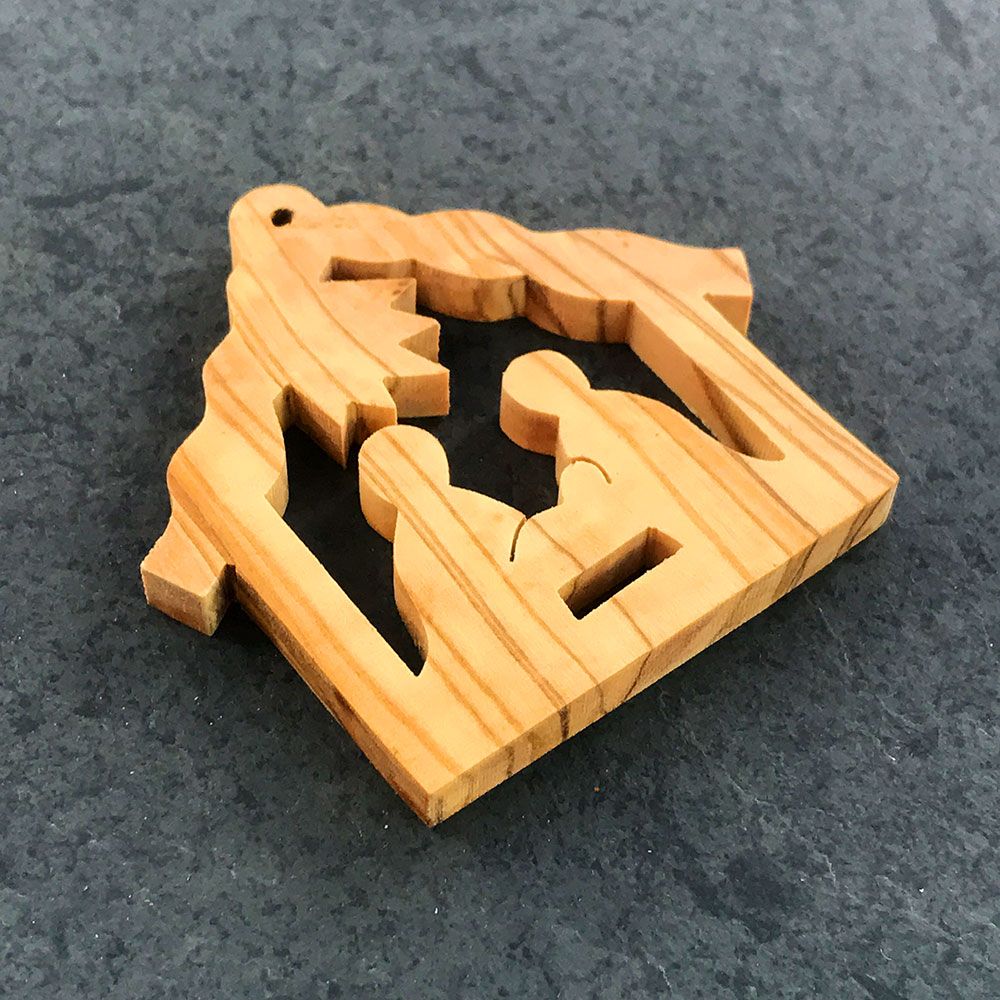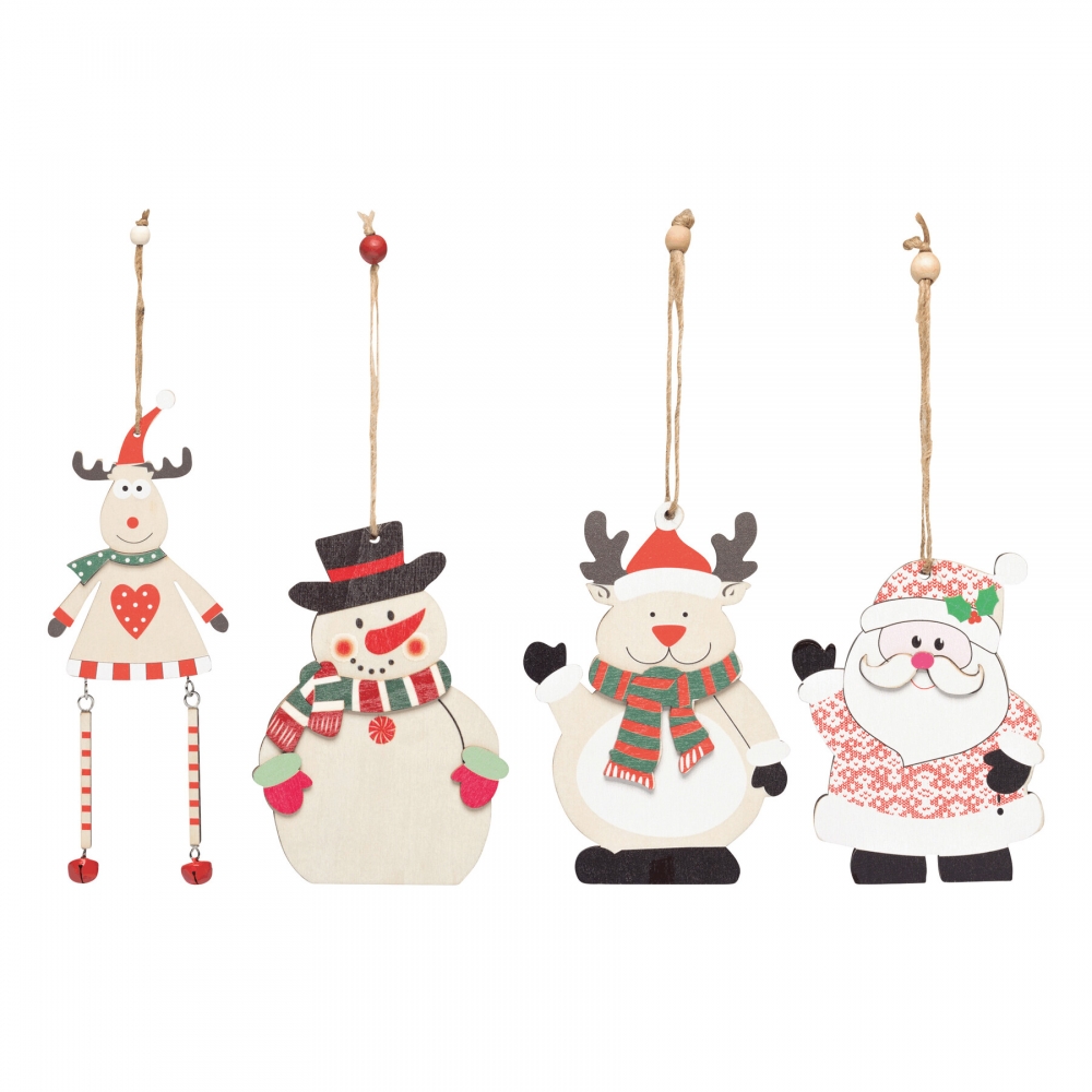 Set mit 6 Weihnachtsbaumanhängern aus Holz. Verschiedene Motive. Verpackt in einer Geschenkschachtel mit transparentem Deckel.