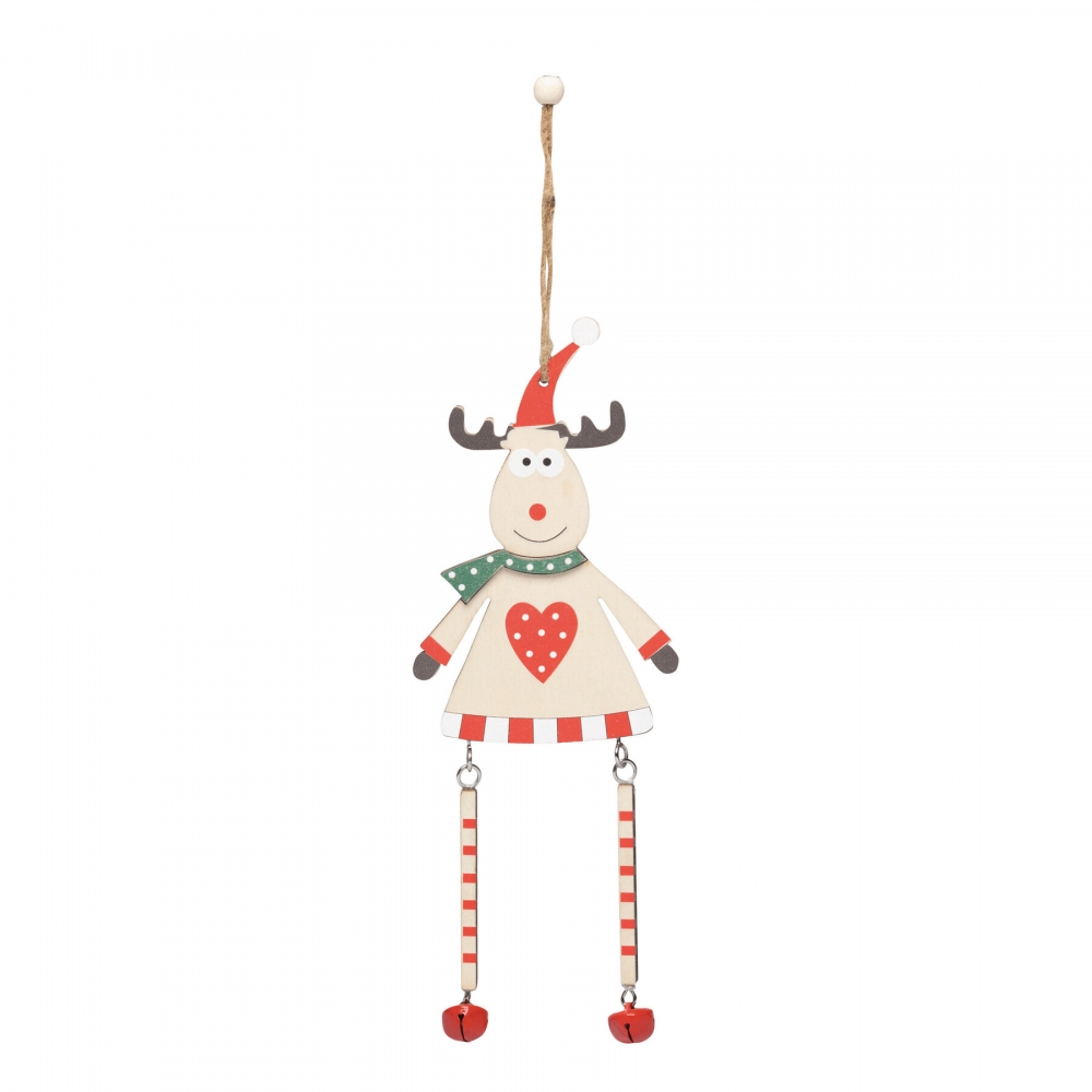 Weihnachtsbaumanhänger 'X-MAS Heart' aus Holz in Herz-Form. Der Anhänger ist mit einem roten Bändchen versehen, an dem er einfach aufgehängt werden kann.