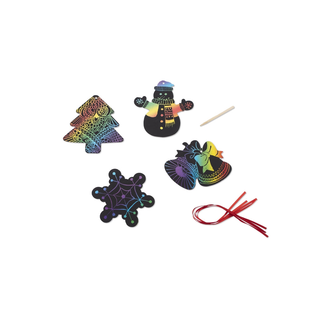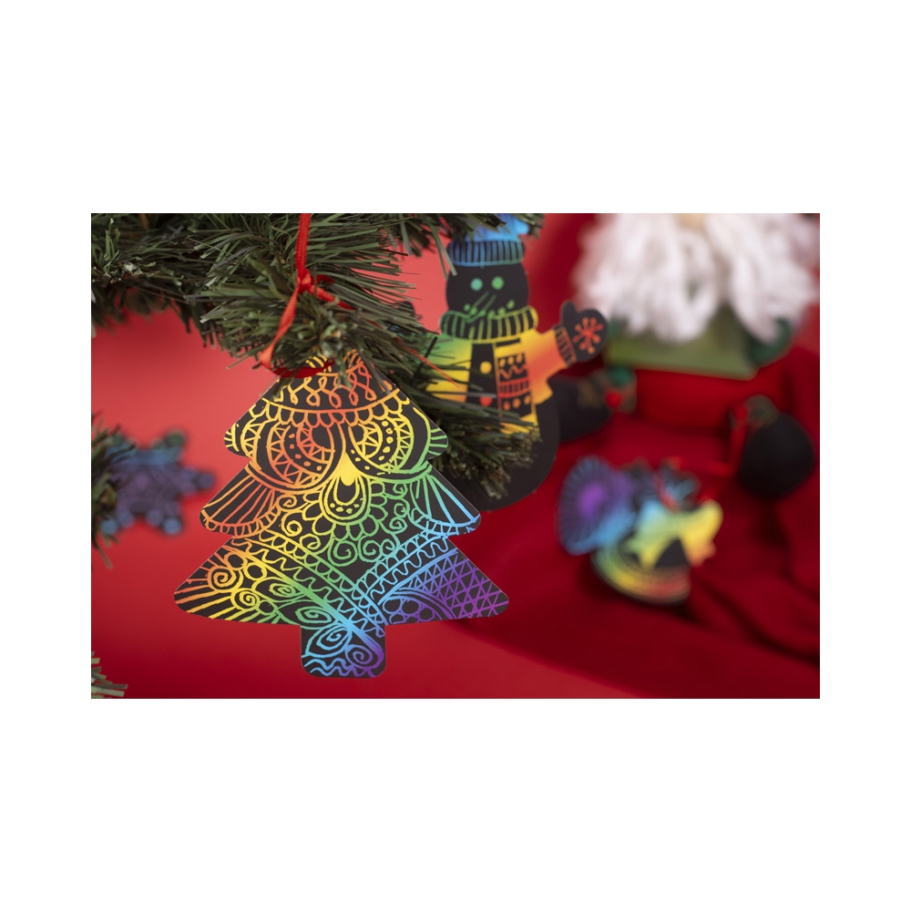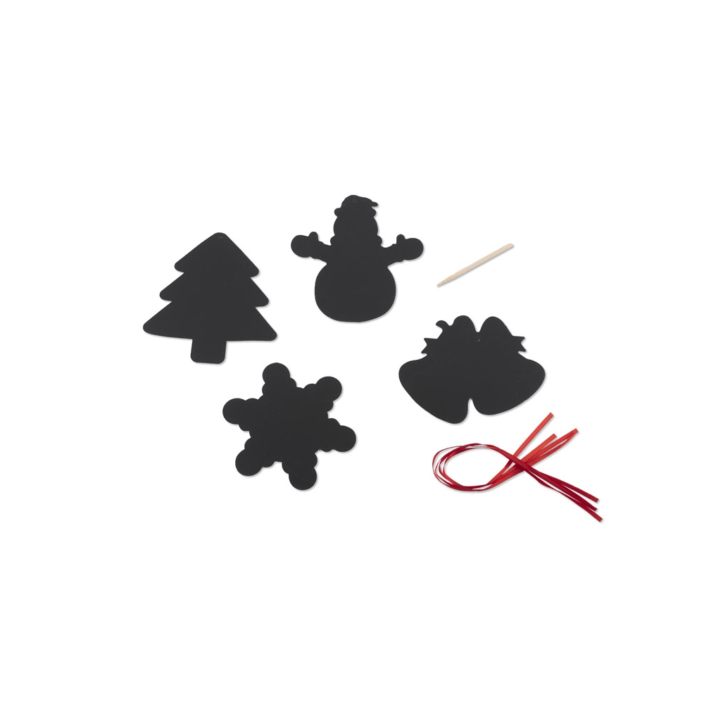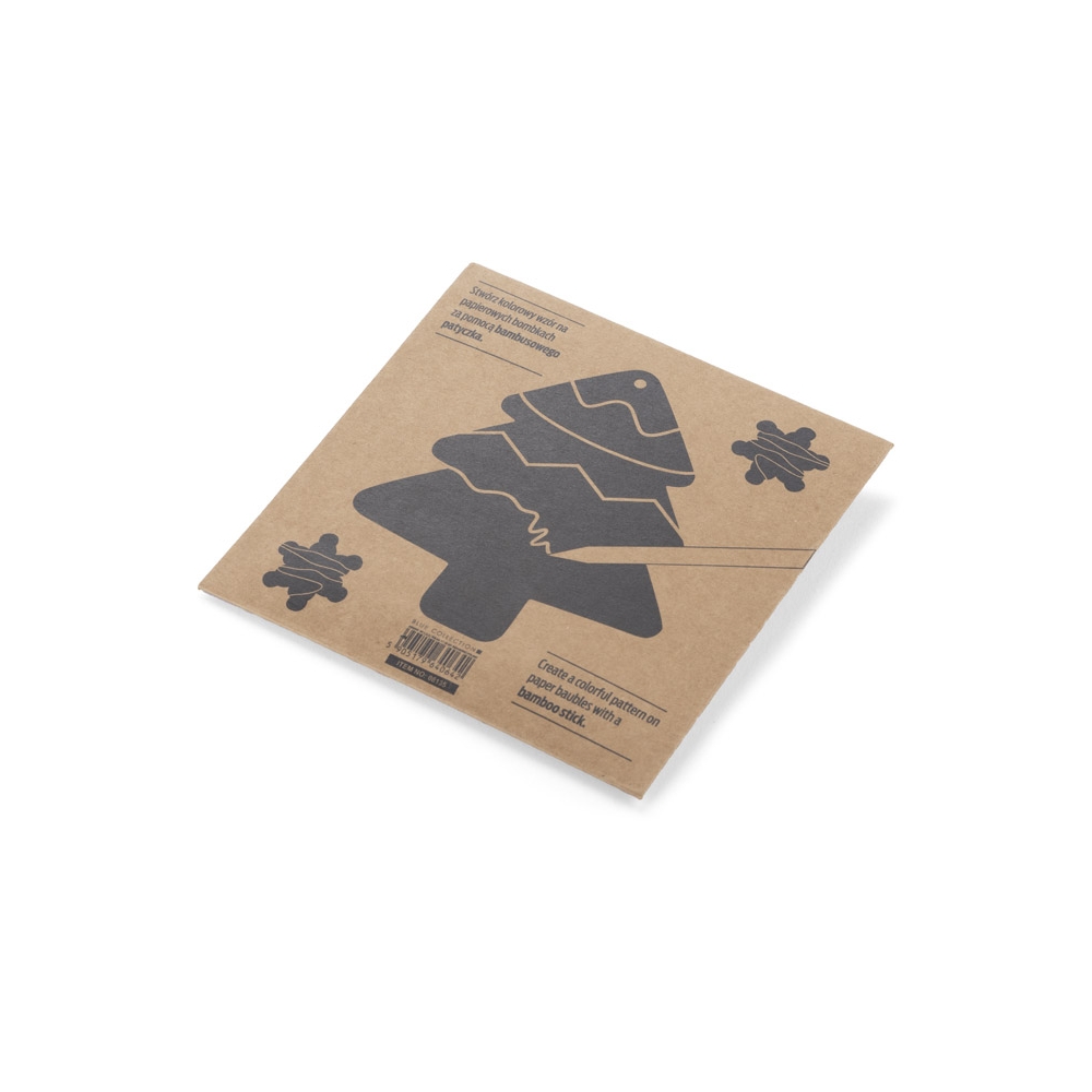 Weihnachtsbaum-Anhänger-Set. Mit Hilfe eines Bambusstabes können Sie auf einfache und unterhaltsame Weise Ihre eigenen außergewöhnlichen und einzigartigen Kugeln gestalten. Das Set enthält 4 Formen: eine Glocke, einen Stern, einen Weihnachtsbaum und einen Schneemann. Hergestellt aus Papier. Verpackt in einem braunen Umschlag.