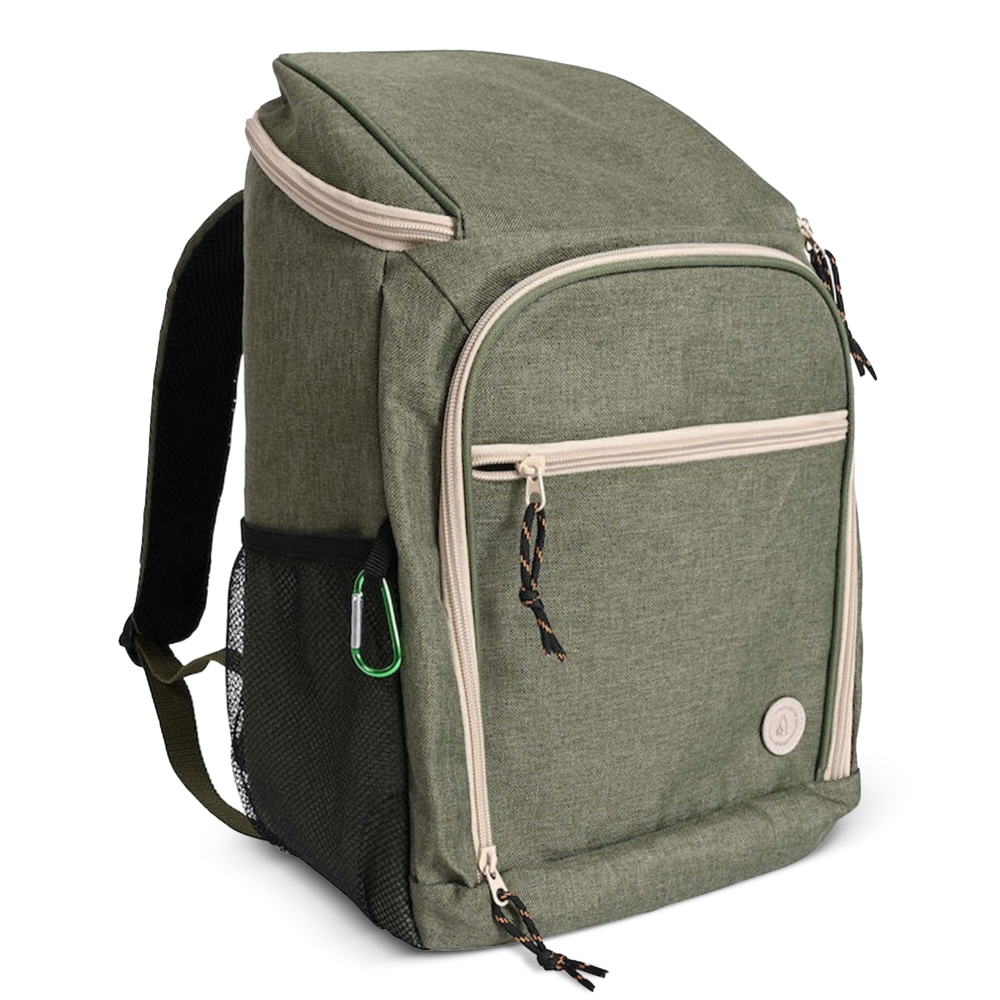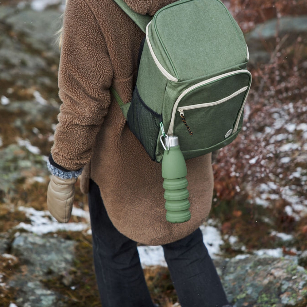 Ein wirklich luxuriöser und sportlich cooler Rucksack in grünem rPET-Material aus der Sagaform-Serie City rPET. Der Rucksack hat viele neue und tolle Details, die ihn in Wald und Feld noch nützlicher machen. Zwei Außentaschen, Netztasche an den Seiten, Karabiner zum Verstauen eines Bechers oder anderer Gegenstände, Innengurte, verbesserte Rückenpartie und verstellbare Schultergurte. Reißverschlüsse und gerippte Schnüre sind stilvolle Details in Kontrastfarben. Der Transport von Kühlgut war noch nie so einfach.