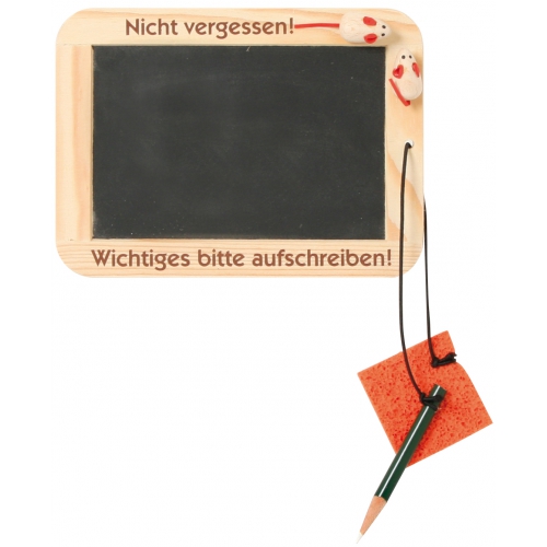 Mit dem Kreidegriffel ist die Tafel leicht zu beschriften und mittels feuchtem Schwämmchen auch schnell wieder zu reinigen.