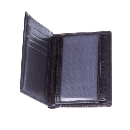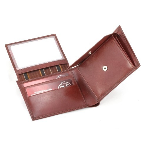 Leder (Ziegenleder) RFID (Anti-Skimming) Kreditkarte Brieftasche mit drei Taschen auf der linken Seite und große transparente Fenster auf der rechten Seite.