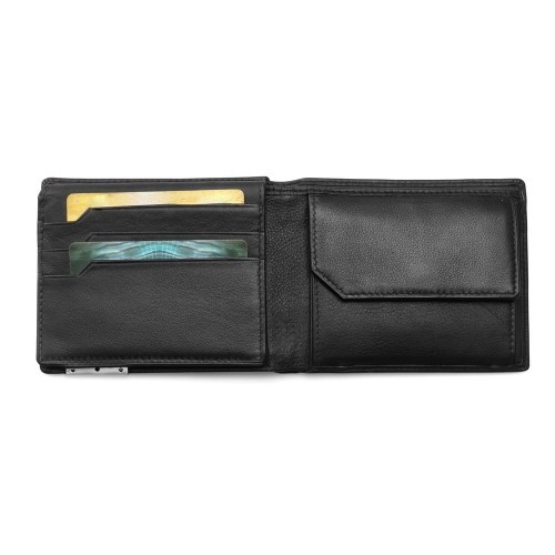 Brieftasche aus Leder mit RFID-Schutz, einem Münzfach, einem Geldscheinfach und Fächer für 9 Kreditkarten. Geliefert in einer Geschenkschachtel. 110 x 92 x 13 mm | Schachtel: 130 x 109 x 24 mm
