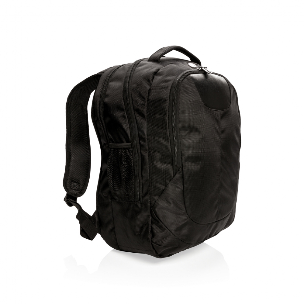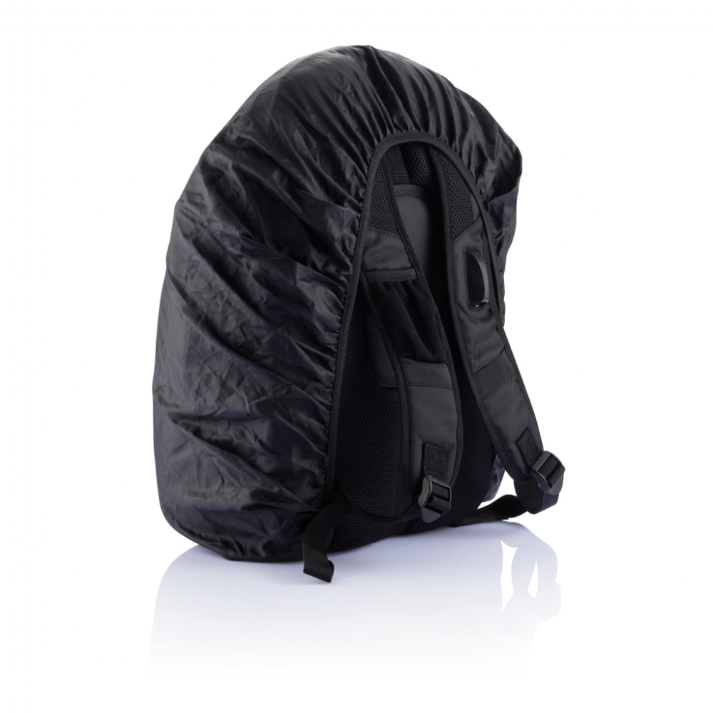1680D Polyester Laptop-Rucksack mit einzigartiger Balance zwischen Tragekomfort und Outdoorschutz. Der Rucksack beinhaltet alle erdenklichen Details - vom gepolsterten Laptopfach und iPad Halter, bis hin zum Stiftehalter und diversen Netztaschen. Am Trageriemen befindet sich ein Audio-Stecker, um Ihre Kopfhörer zu verbinden und ein Sonnenbrillenetui. Als Extra ist sogar ein Regenschutz vorhanden. Geschütztes Design®