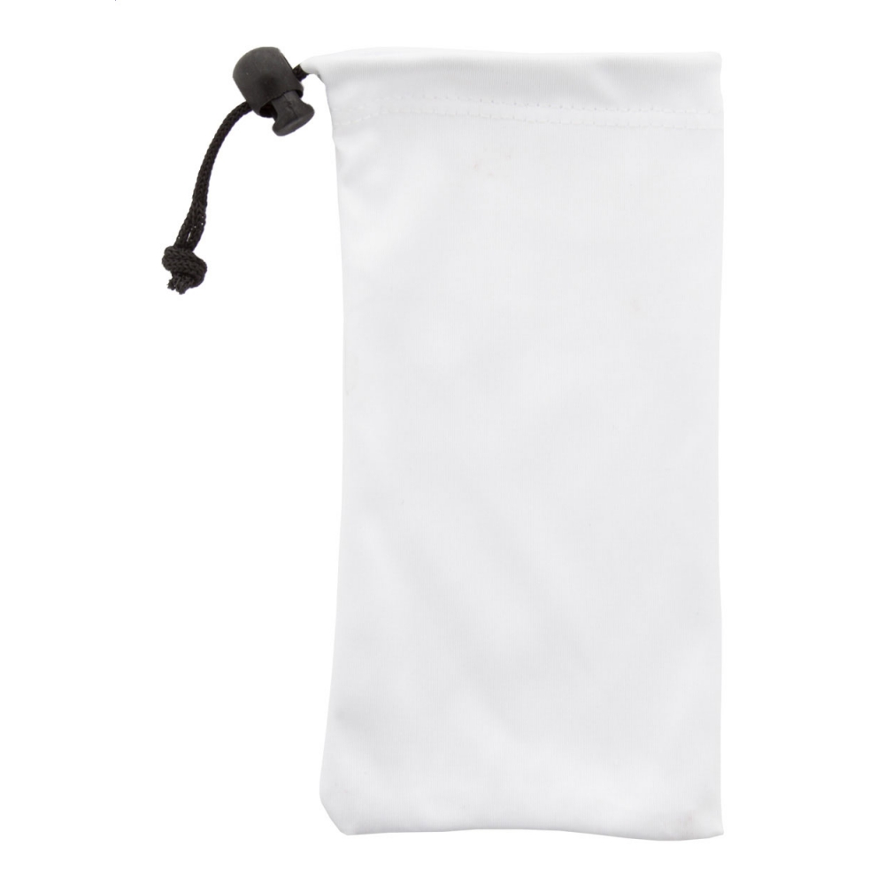 Sonnenbrillenetui mit Kordelzug aus RPET-Mikrofaser.