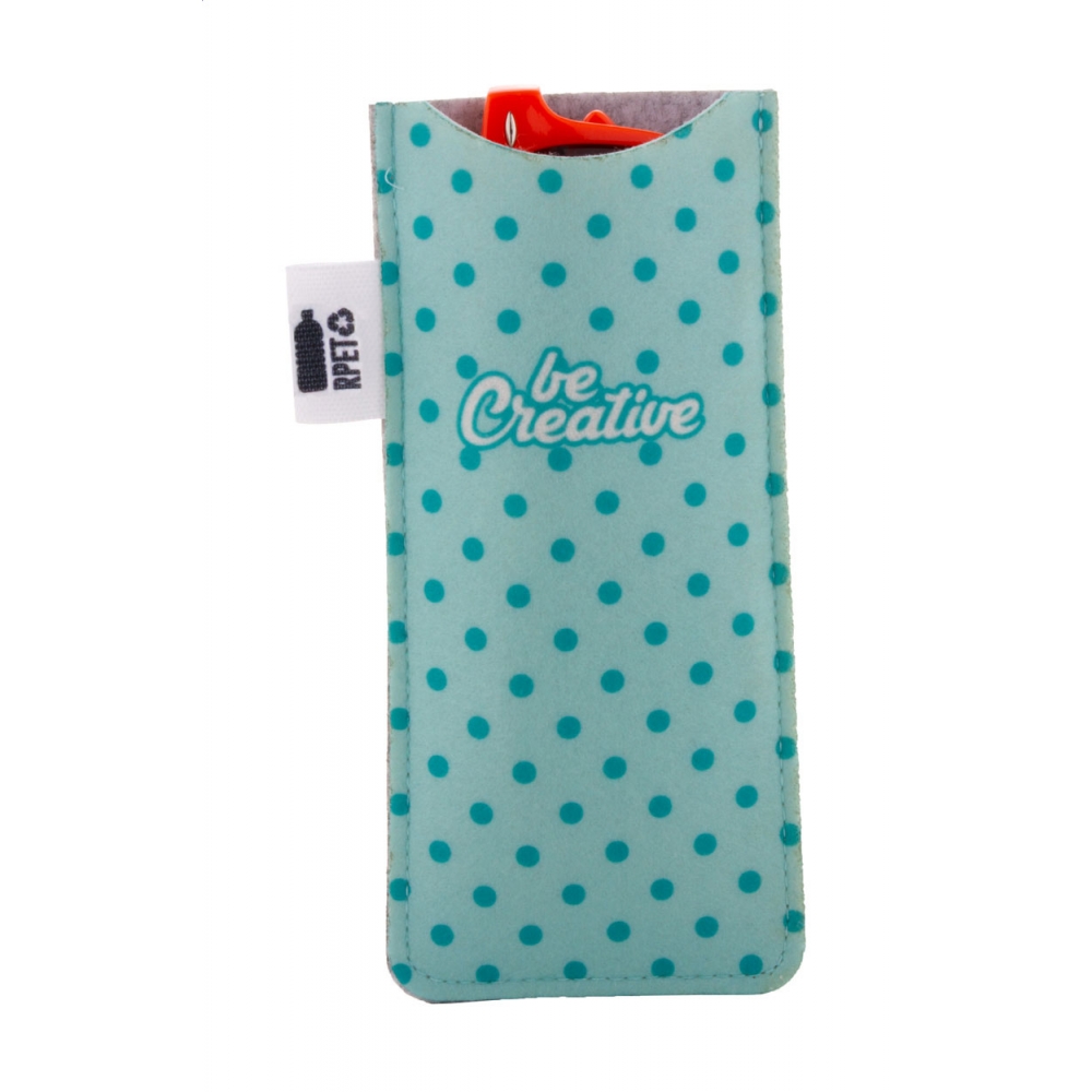 Brillenetui aus weicher RPET-Mikrofaser. Erhältlich in einer Vielzahl von lustigen Farben, mit selbstschließenden Schnüren und RPET-Label. RPET-Material besteht aus recyceltem Kunststoff und fördert so die Wiederverwendung von Kunststoffabfällen und trägt zur Nachhaltigkeit des Planeten bei.