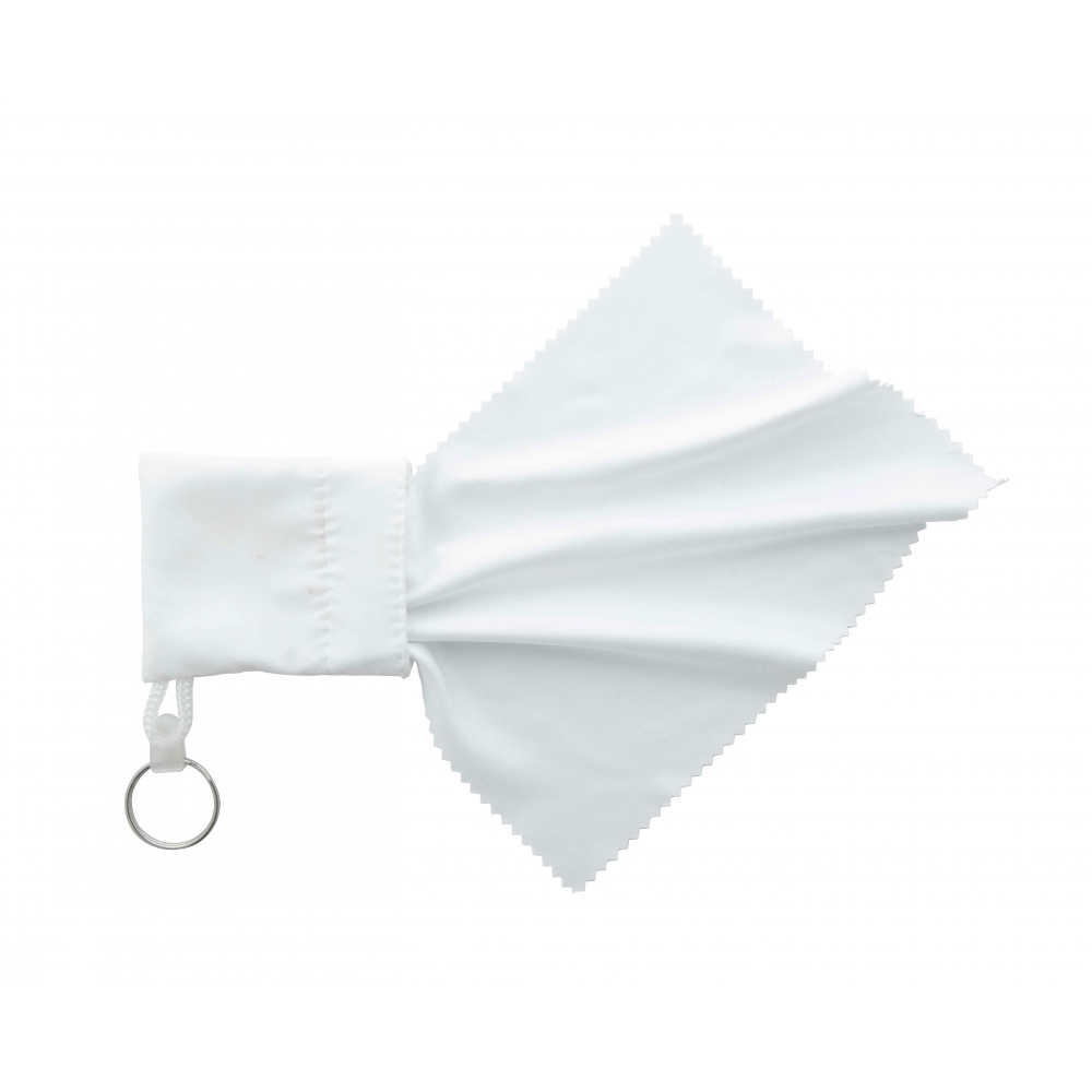 Mikrofaser-Reinigungstuch (13 x 18 cm), für z. B. Brillen, in einem weichem Kunststoffetui mit Schlüsselring.